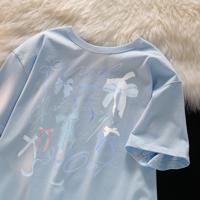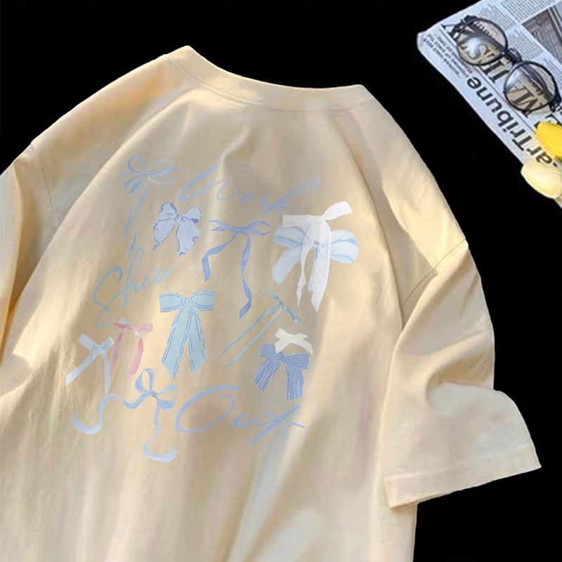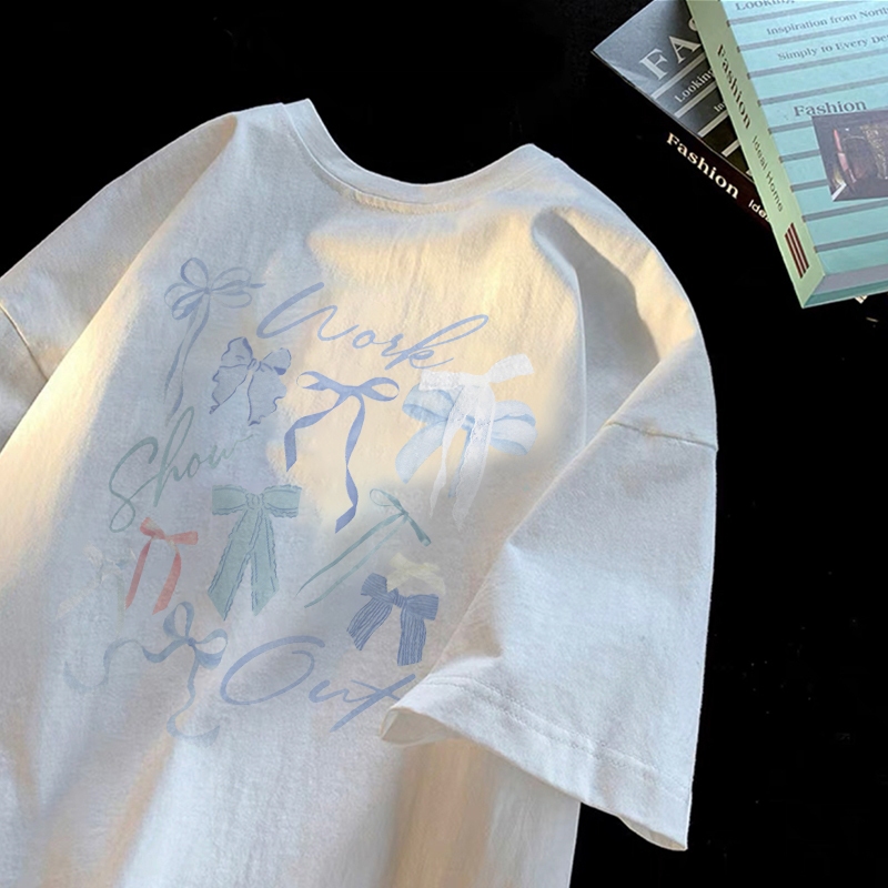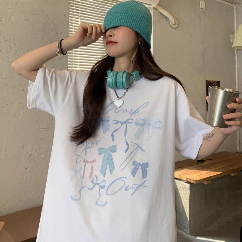 Forteid T-shirt Lengan Pendek Baju Kaos Oversize Wanita Baju kaus wanita korea Baju Atasan Wanita Terbaru cetakan busur berwarna-warni Cotton Atasan Kaos kaos lucu wanita