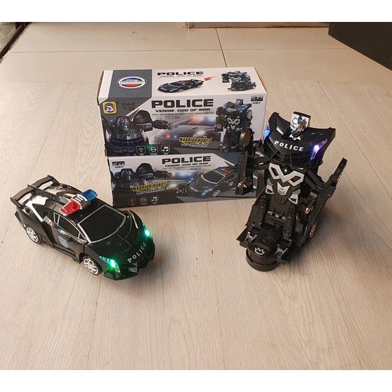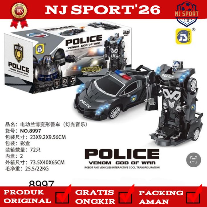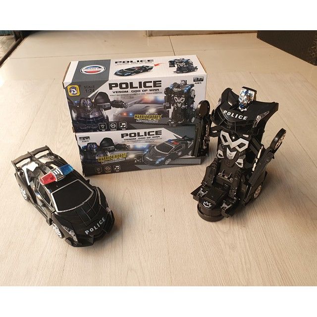 MAINAN ANAK LAKI LAKI MOBIL REMOTE CONTROL ROBOT POLICE HITAM WARRIOR POLICE ROBOT CAR NO.S8997