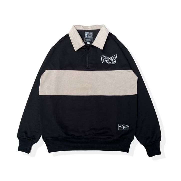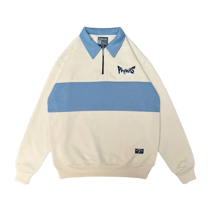 Jaket Rugby Premium Sweater Pria Wanita Kasual Unisex Atasan Lengan Panjang Unisex Motif Garis Nyaman Tetap Stylish