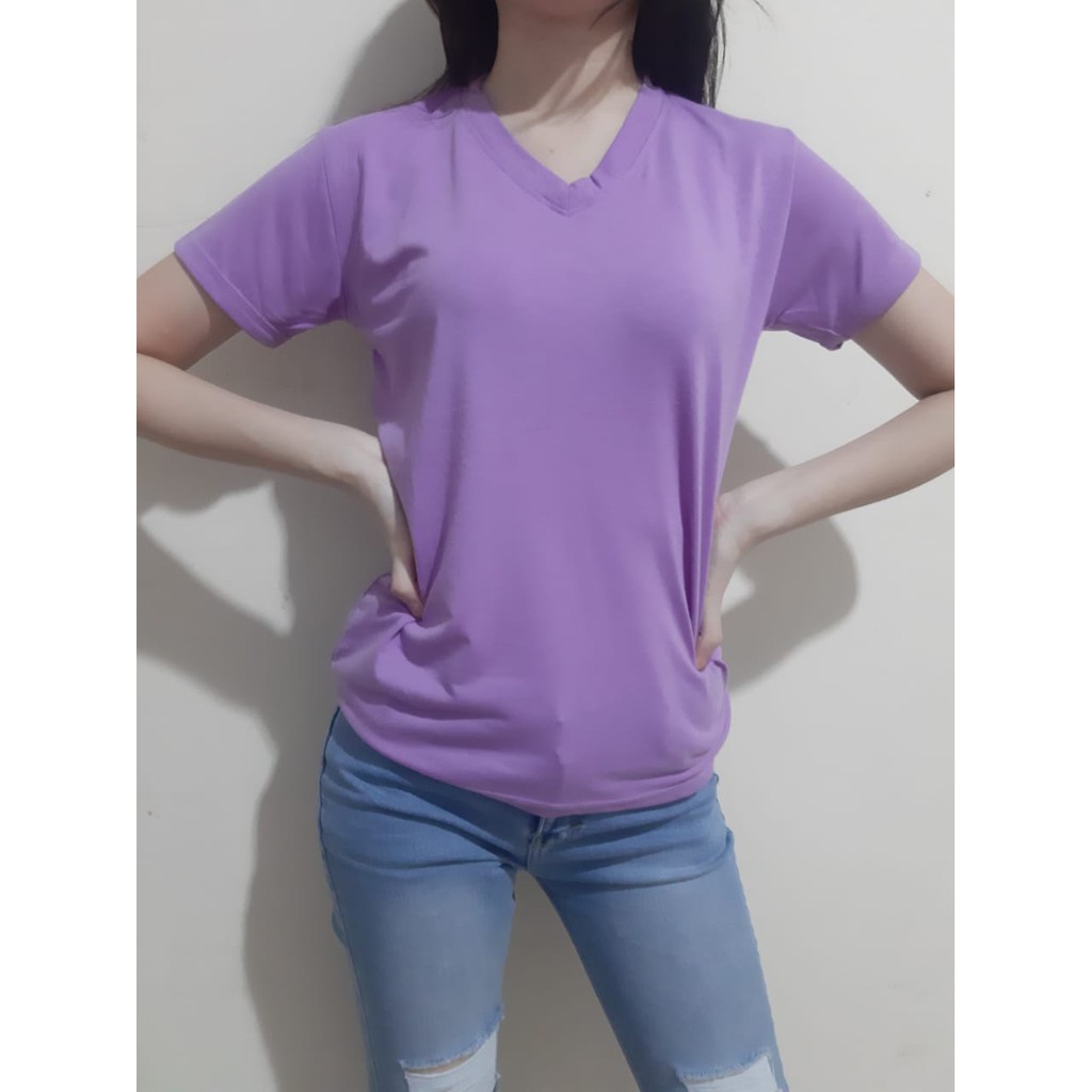 kaos polos V -neck cewe.