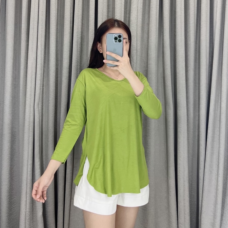 Ladies Collection Kaos Oversize Lengan 78 Kaos Jumbo Lengan Panjang Kaos Oversize Slit Kaos Wanita Lengan 78