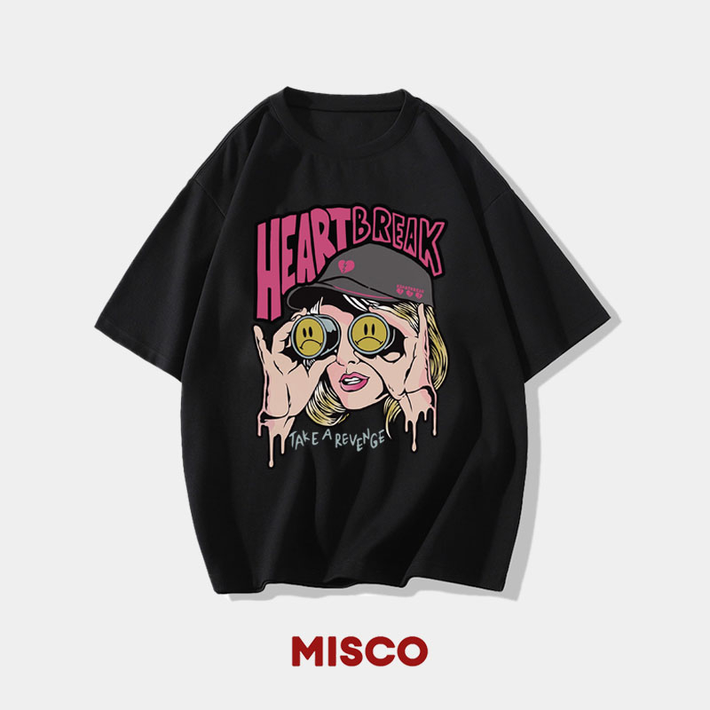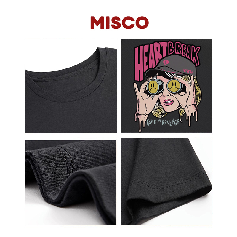 MISCO baju lengan pendek baju kaos oversize wanita kaos cewek oversize wanita Retro Style Sadness Woman Print atasan kaos putih wanita keren kaos skena oversize tee ootd 100 PERSENKapas