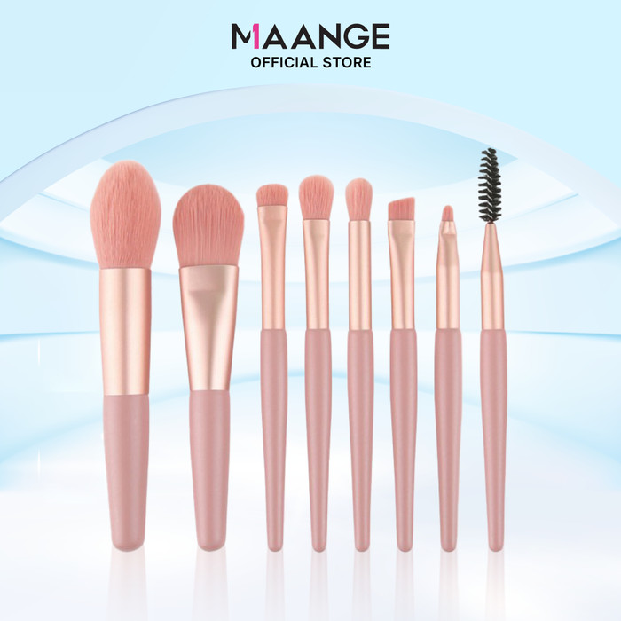 MAANGE 8 PCS KUAS MAKEUP MINI SET KUAS BIBIR ALIS EYESHADOW MAG5857 - MERAH MUDA