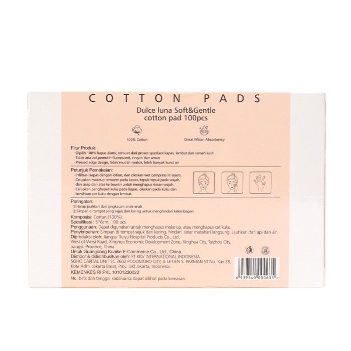 KKV DULCE LUNA 100 PERSEN ULTRA THIN PURE COTTON BUDS PADS 100PCS - 100 PCS