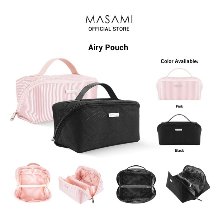 MASAMI AIRY POUCH IN CARBON / TAS POUCH MAKEUP MULTIFUNGSI MAKE UP BAG - MERAH MUDA