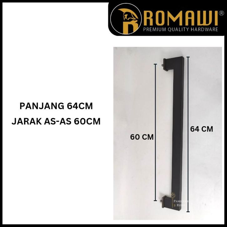 PULL HANDLE GAGANG PEGANGAN PINTU TARIK KACA KOTAK STAINLESS ALUMUNIUM KAYU FULL HITAM BLACK SILVER 64 CM ROMAWI K803