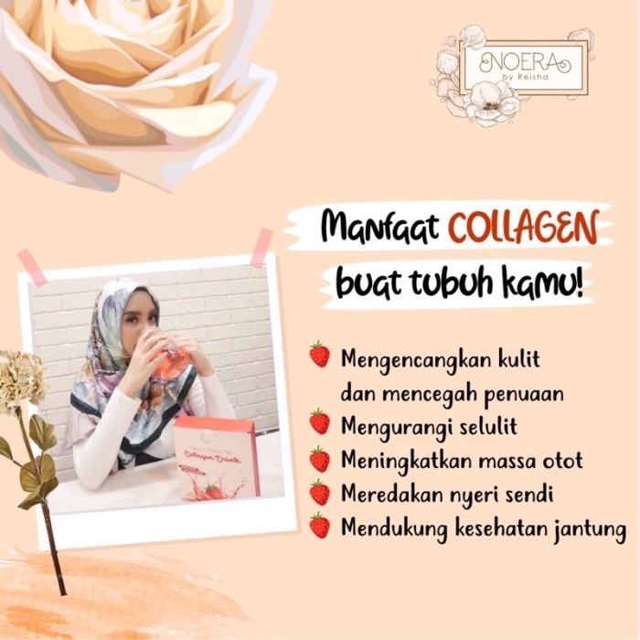 NOERA COLLAGEN DRINK MINUMAN KOLAGEN PEMUTIH BADAN RASA STROBERI ASLI - 5 SACHET PEACH