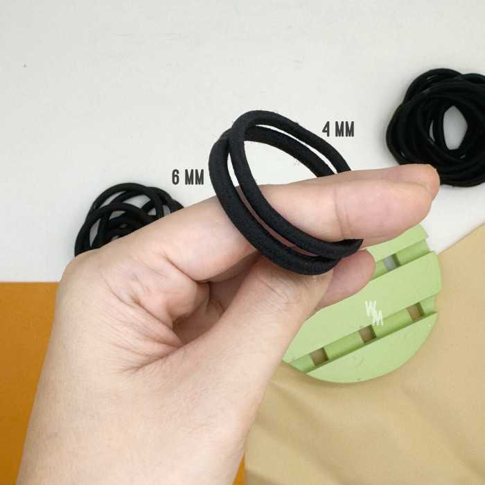 10PCS KARET IKAT RAMBUT POLOS HITAM TEBAL - 4 MM