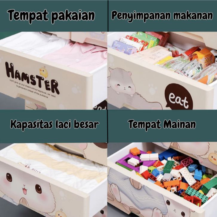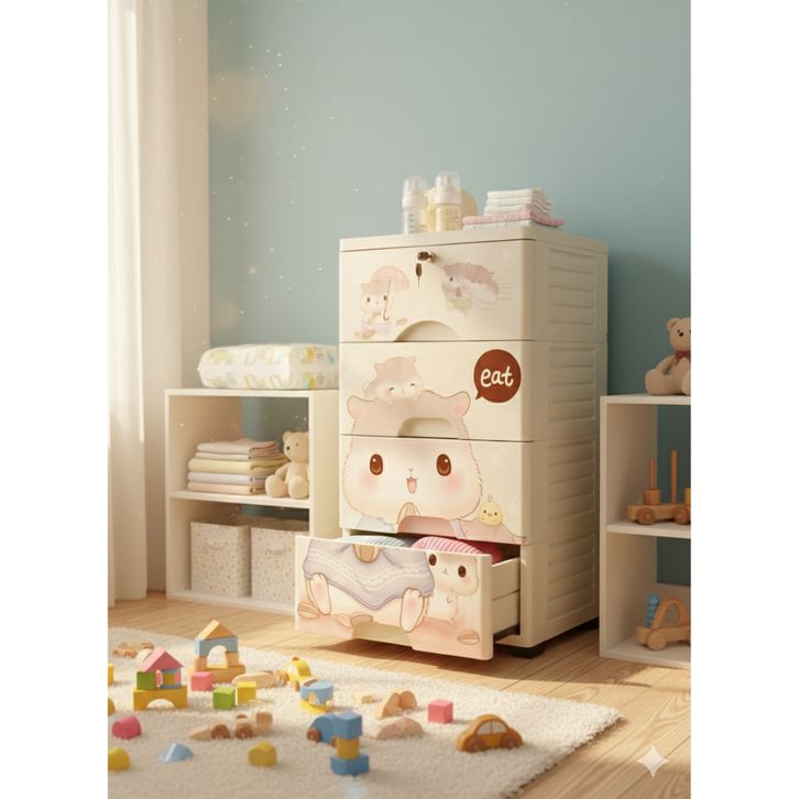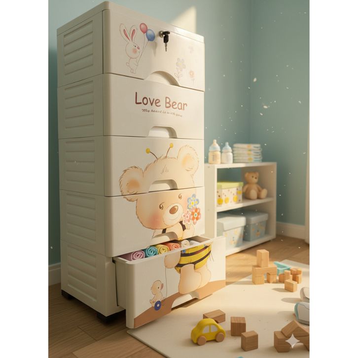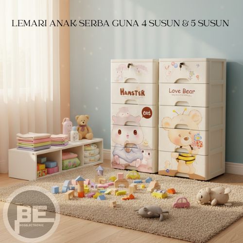 Lemari Plastik Susun 4 & 5 Tingkat | Lemari Pakaian Anak Baby Karakter Lucu