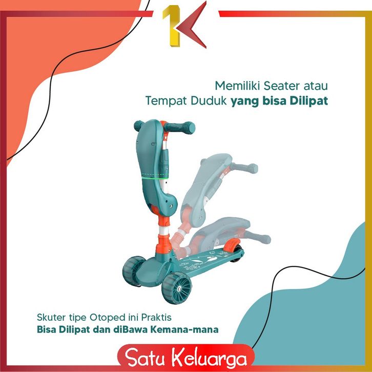 TANPA DP SK-M290 Mainan Anak Skuter Otoped Sepeda Duduk 3 Roda 2in1 Ada Musik Lagu Lampu Scooter Anak roda nyala