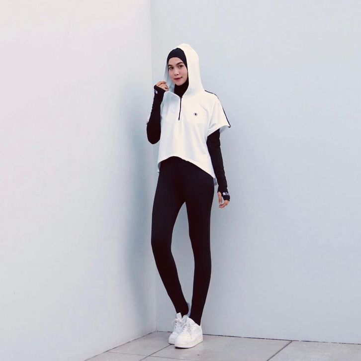 TANPA DP Asymmetric Hoodie Olahraga Wanita Muslim Jumper Lari Bersepeda 9-0237