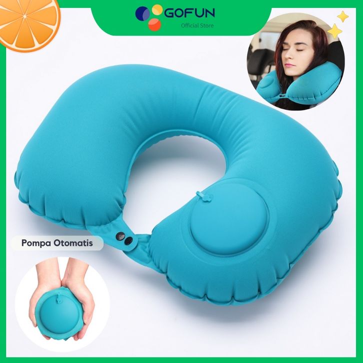 TANPA DP Bantal Leher Angin Pompa Otomatis untuk Travelling Multifungsi Inflatable neck pillow - GO FUN SHOP