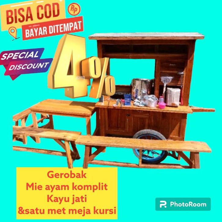 gerobak mie ayam kayu jati dan meja kursi free ongkir