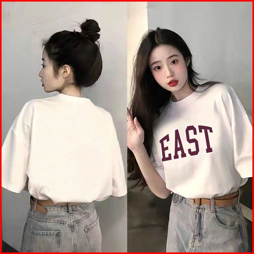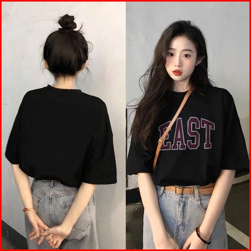Korean Style Baju Kaos Oversize Corak Huruf Printing Baju Atasan Wanita Pria Hitam Kaos Oversize Wanita