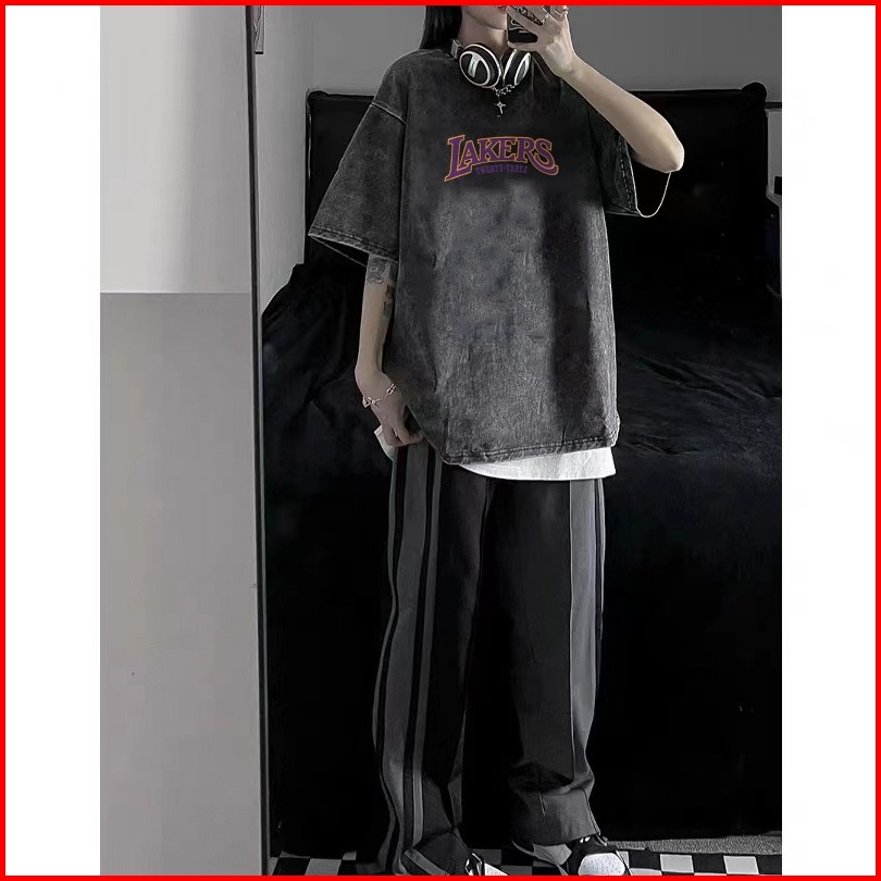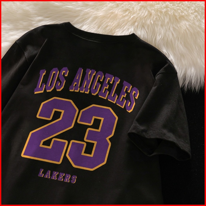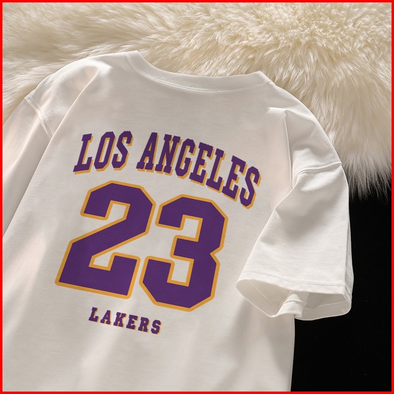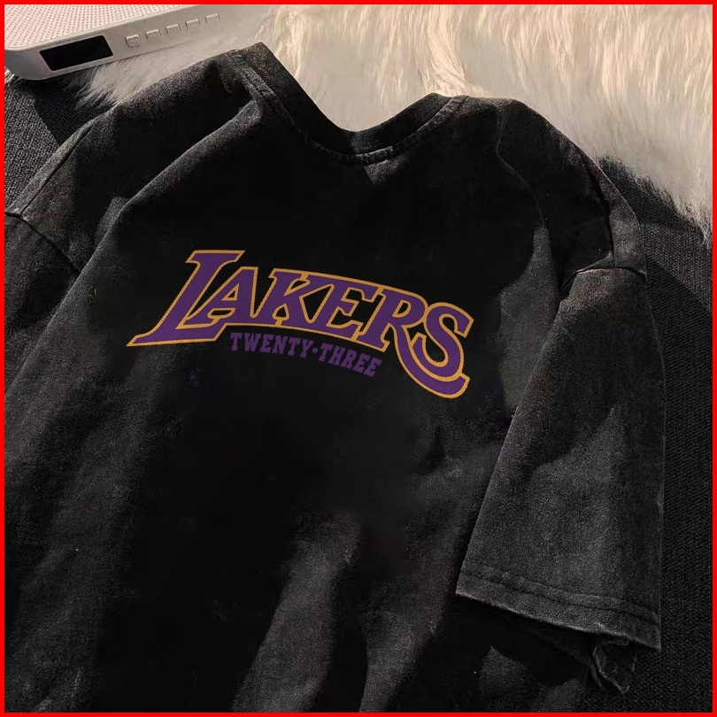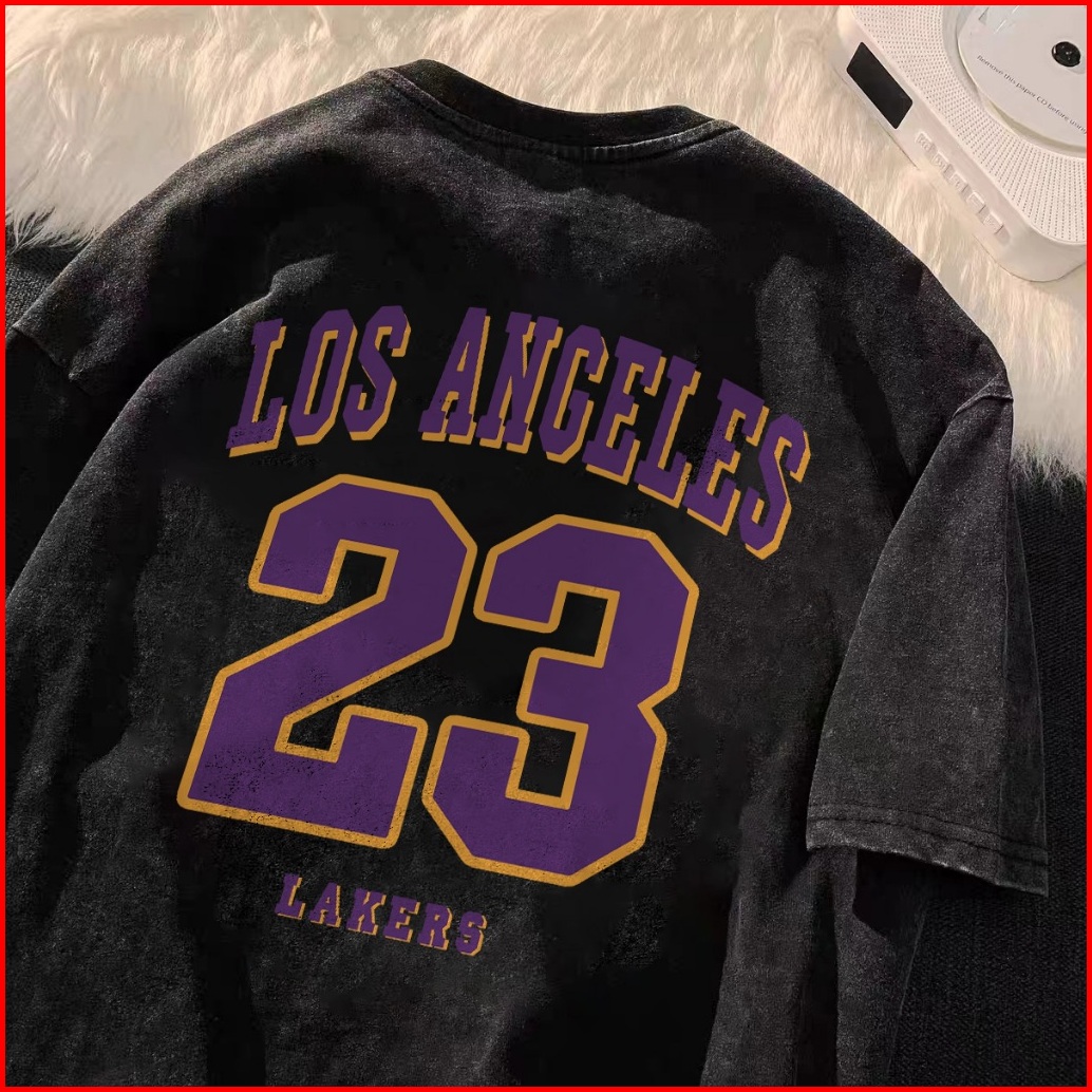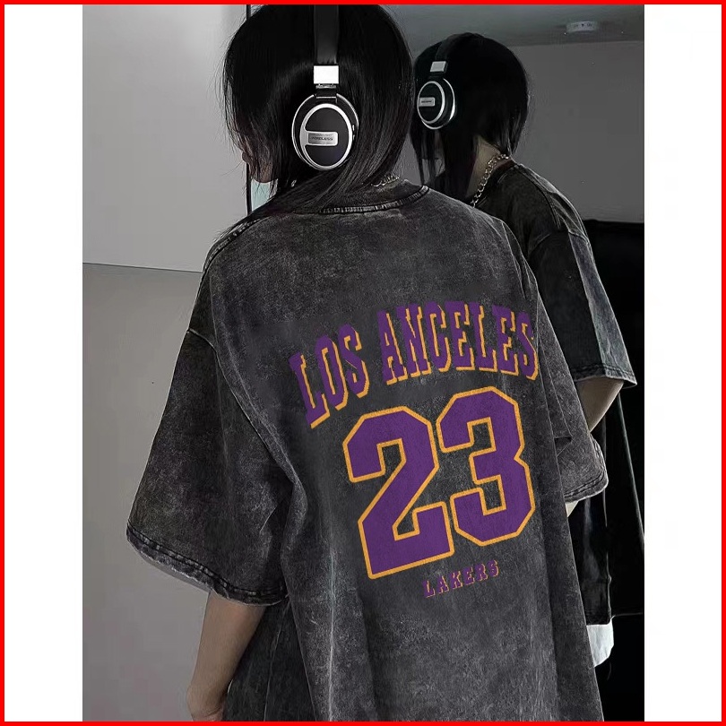Po Floret Washed Kaos Oversize Lengan Pendek T-shirt Los Angeles Lakers 23 Katun Murni Retro Style Baju Atasan Wanita Te