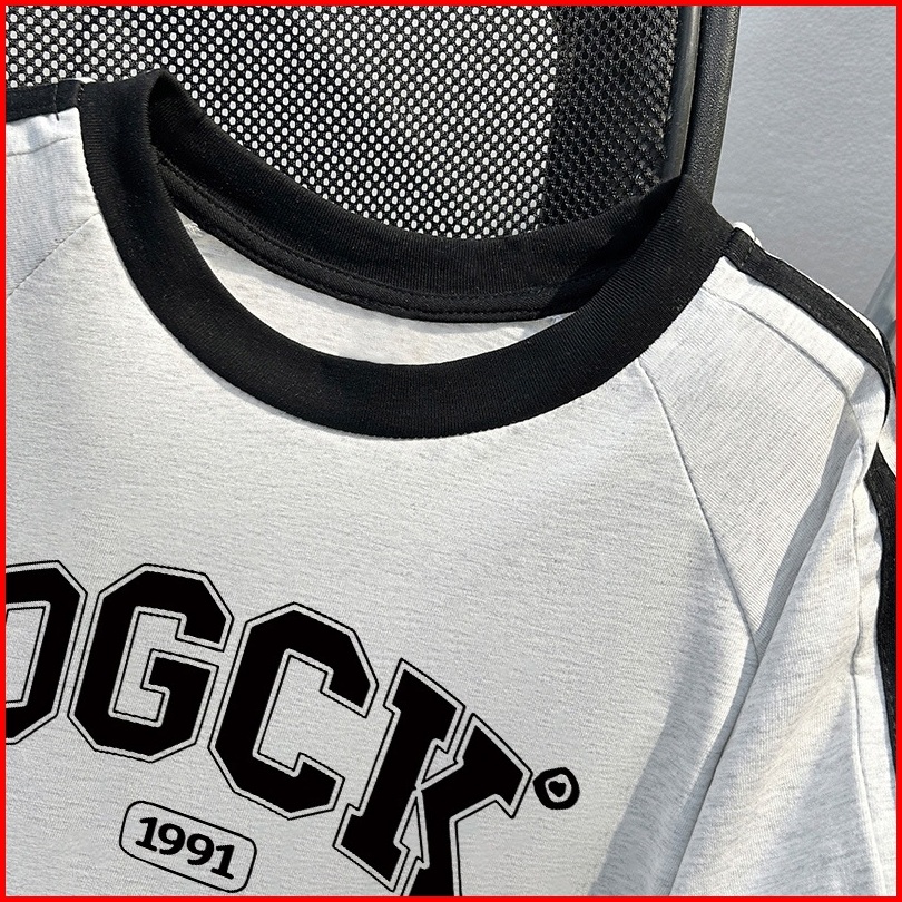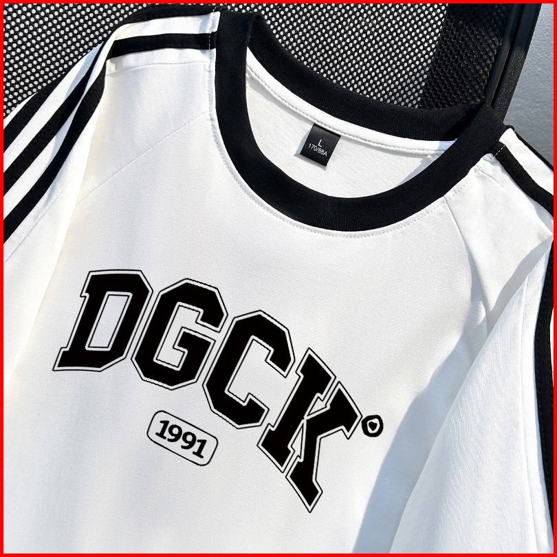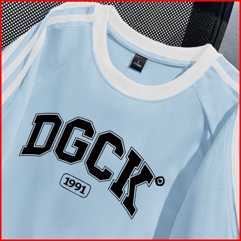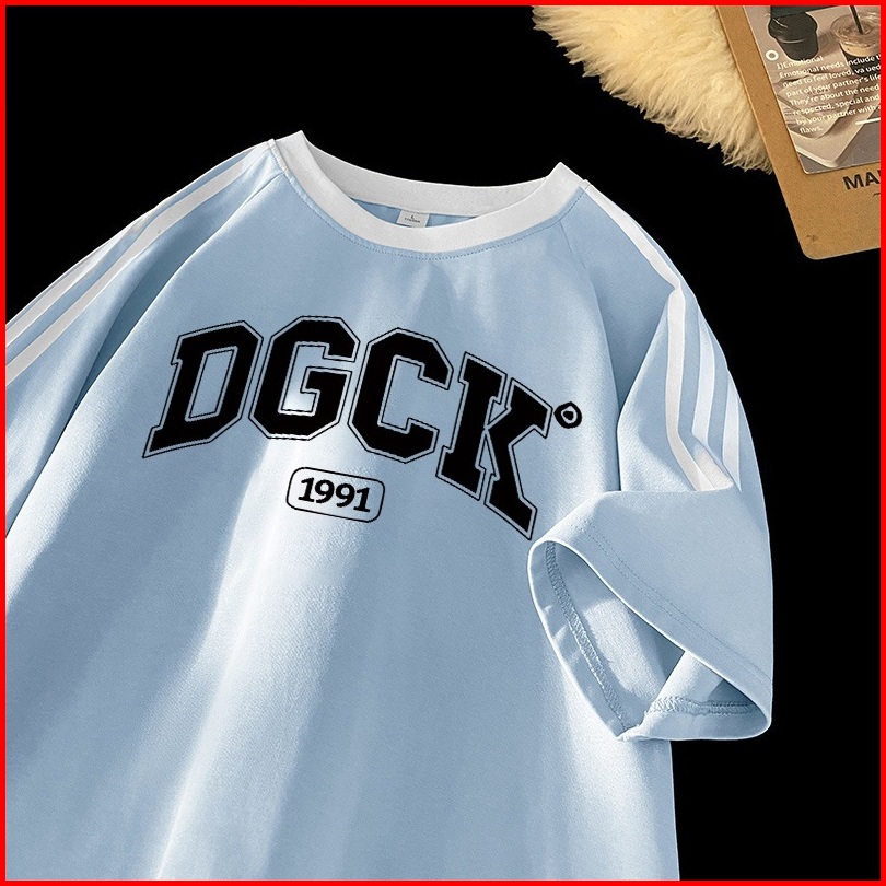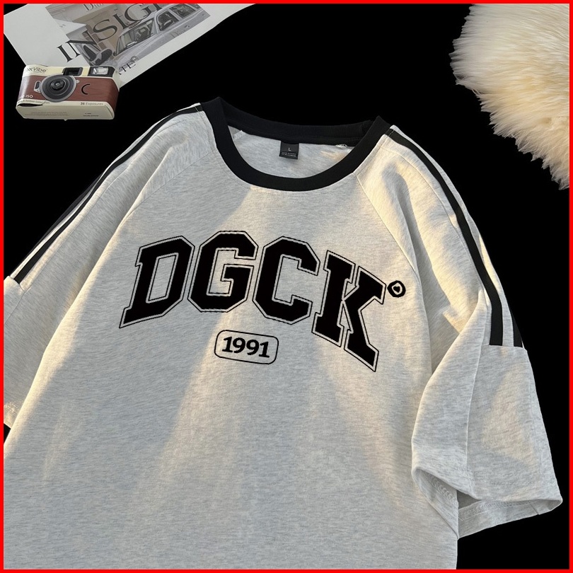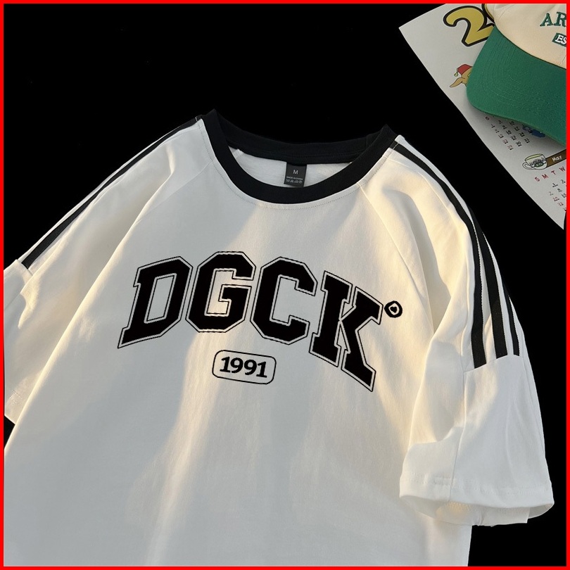 Po Floret Kaos Wanita Atasan Lengan Letter Dgck Letters Baju Oversize Bergaris Bahu Korean Style Kaos Longgar