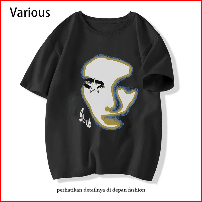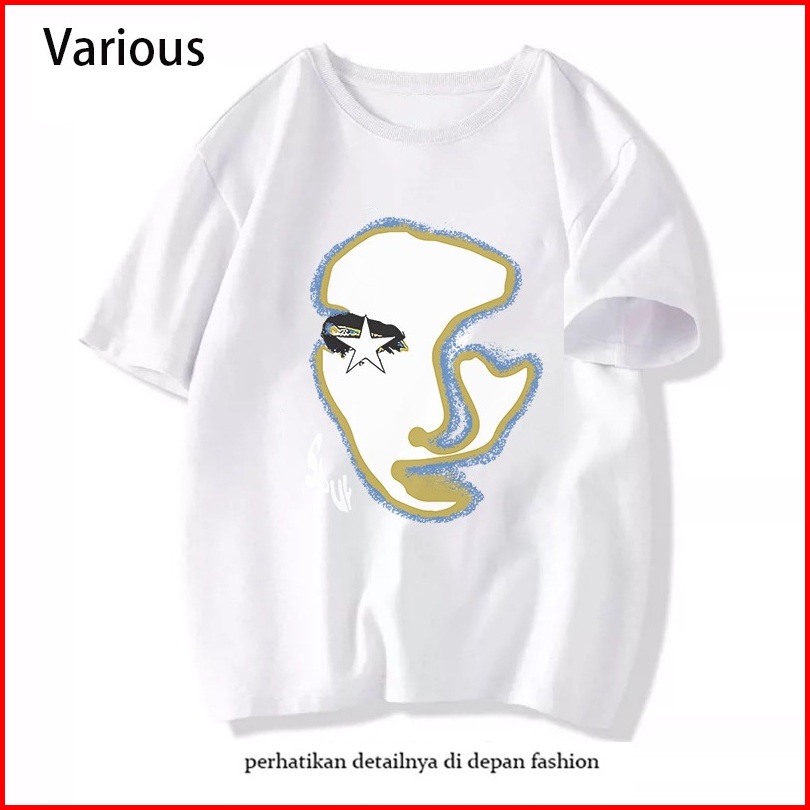 T-shirt Putih Oversize Cotton Potret Printed Kaos Lengan Pendek Pria Dan Wanita Korean Style