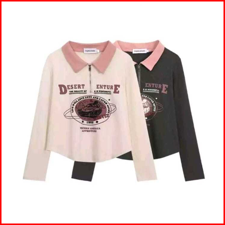 Desert Enture The Beuty Of Worderfull Kerah Ziper Wanita - Tshirt Pakaian Wanita Kekinian