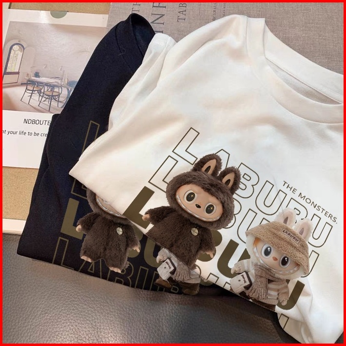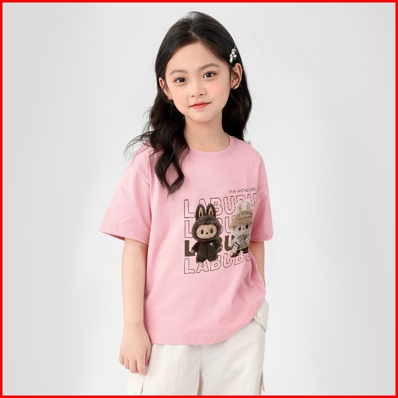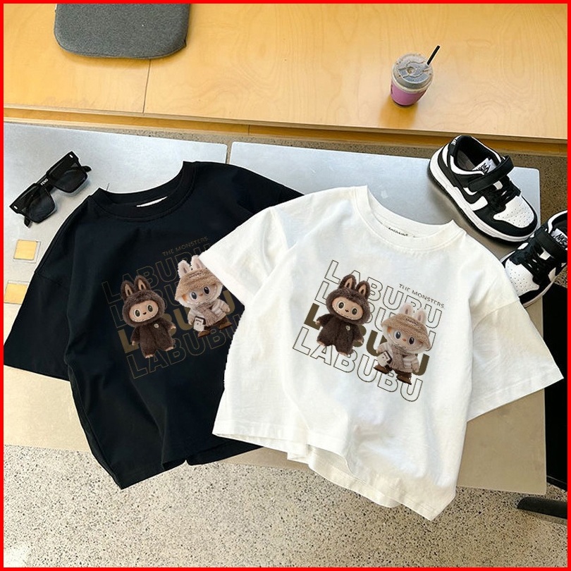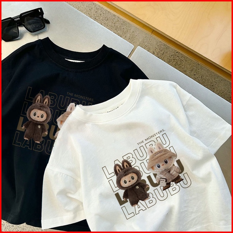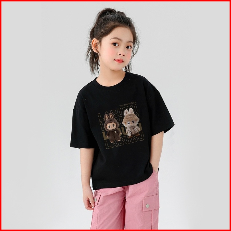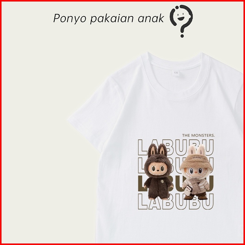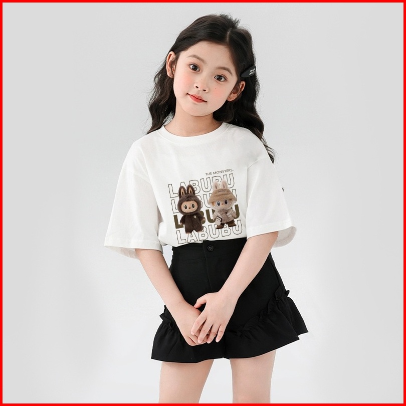 Dailyway Korean Style Kaos Atasan Putih Anak Perempuan Viral Baju The Monsters Cute Labubu Anak Perempuan Baju Anak Rema
