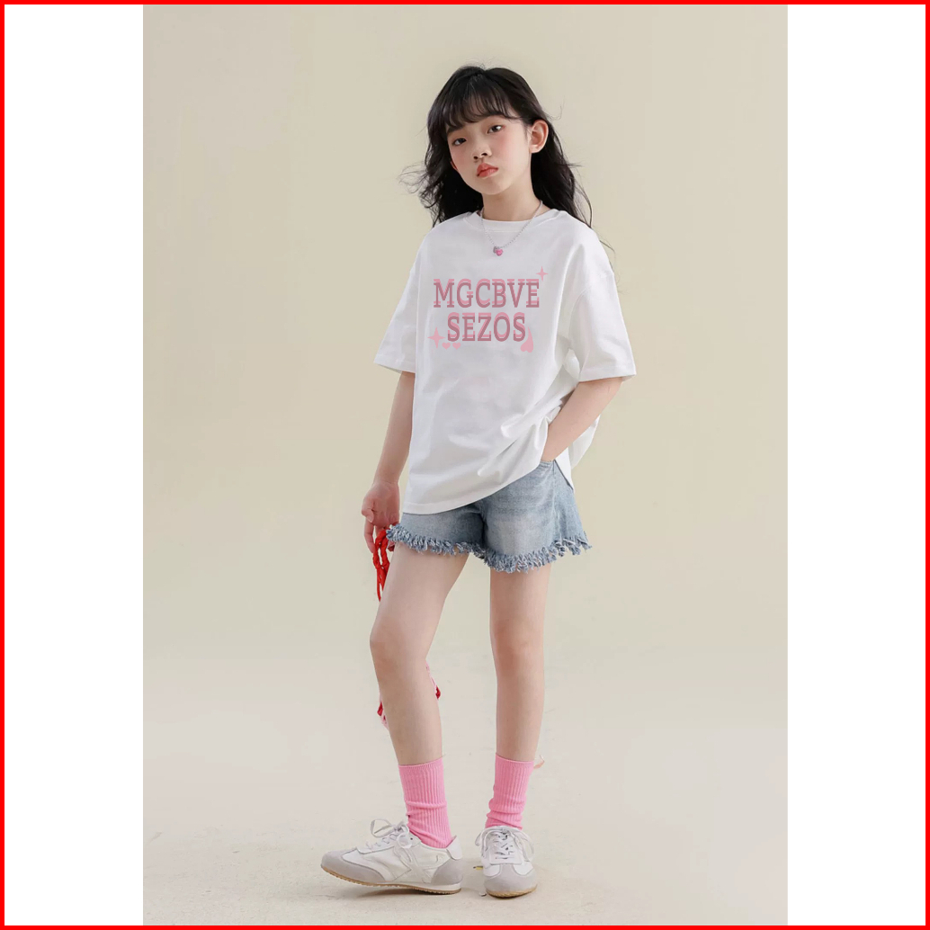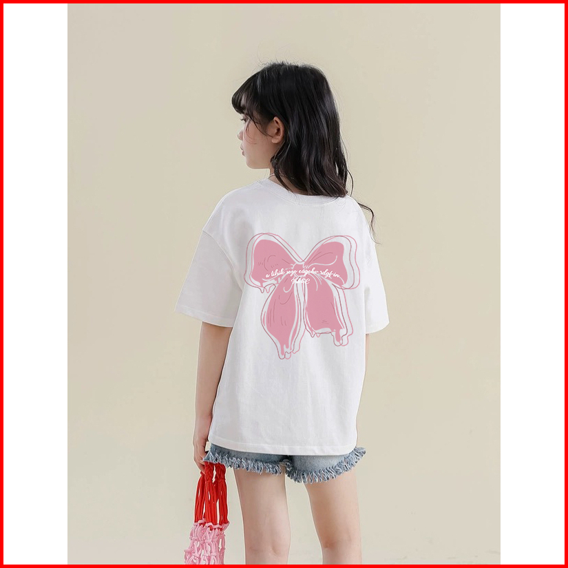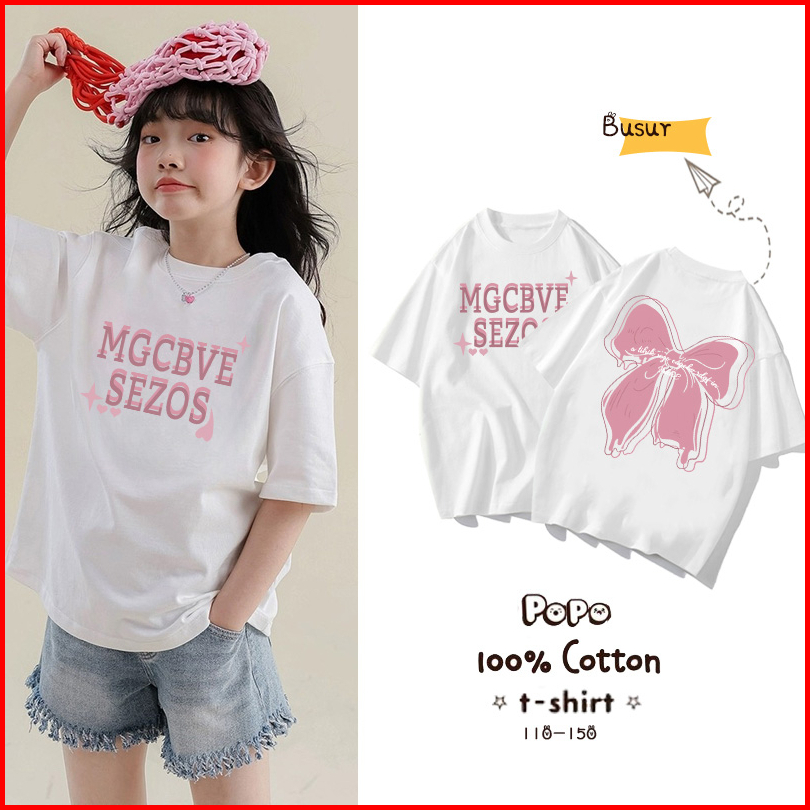 Popo 2024ss Terbaru Import Oversize 100 Cotton Butterfly Pattern Baju Atasan Kaos Anak Perempuan Children S T-shirt 2-12
