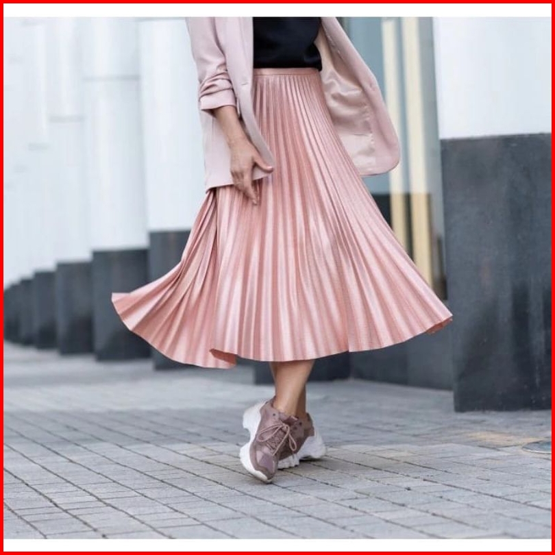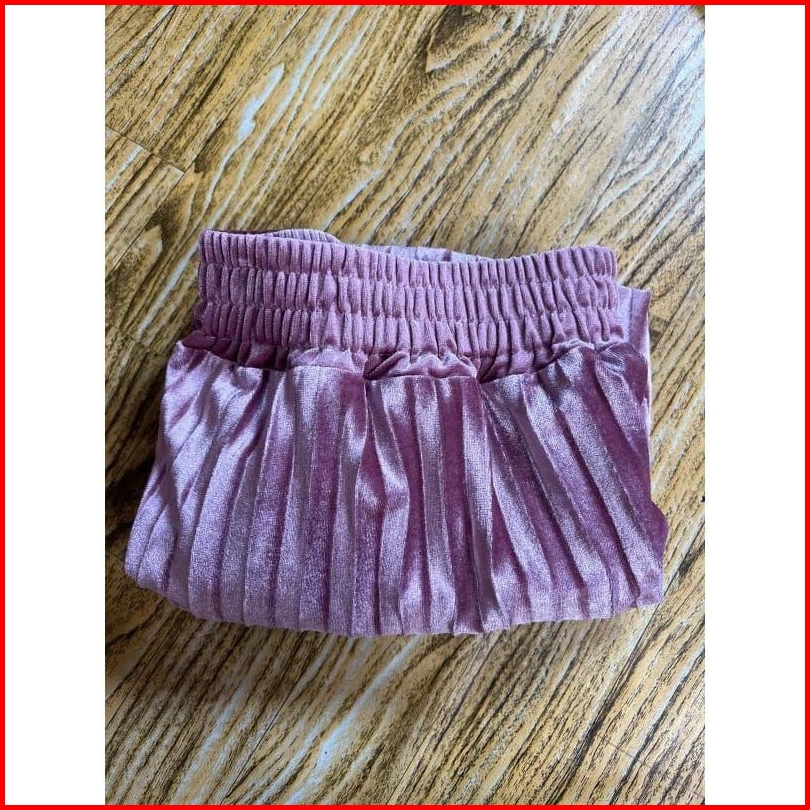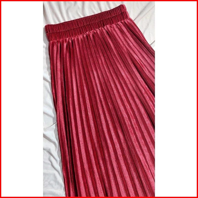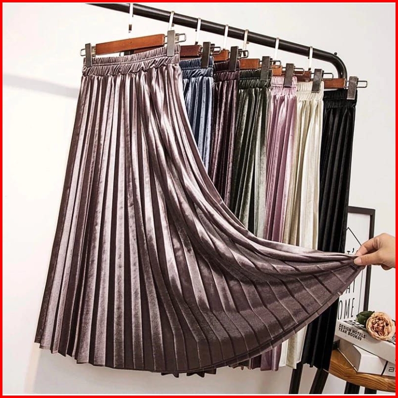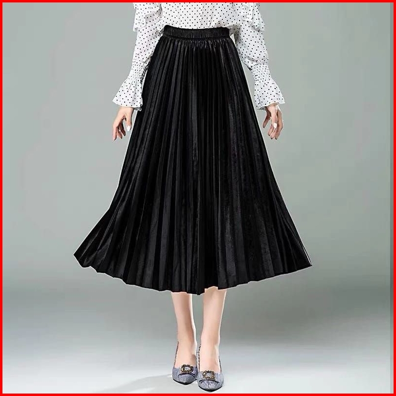 Rok Plisket Bludru 7 8 Spring Autumn Woven Hight Waist Plester Midi Skirt Rok Velvet Mewah