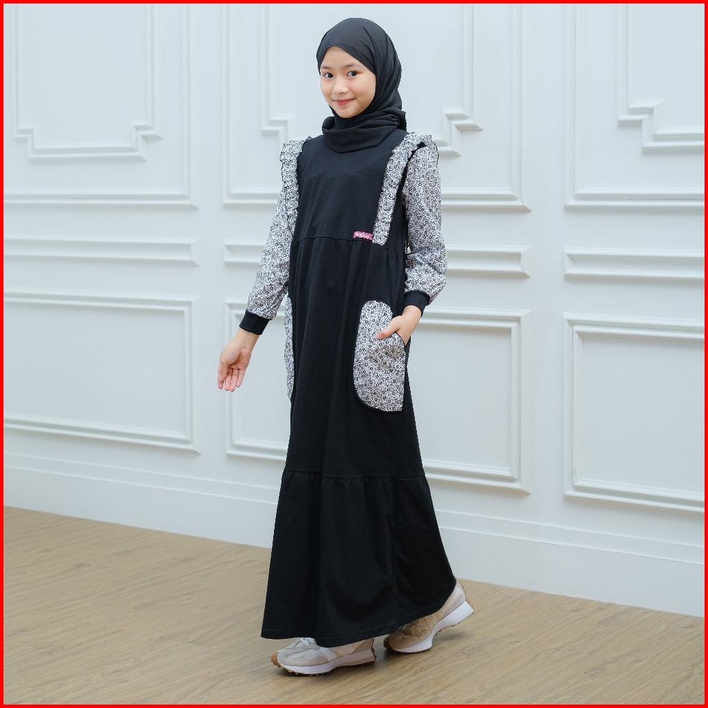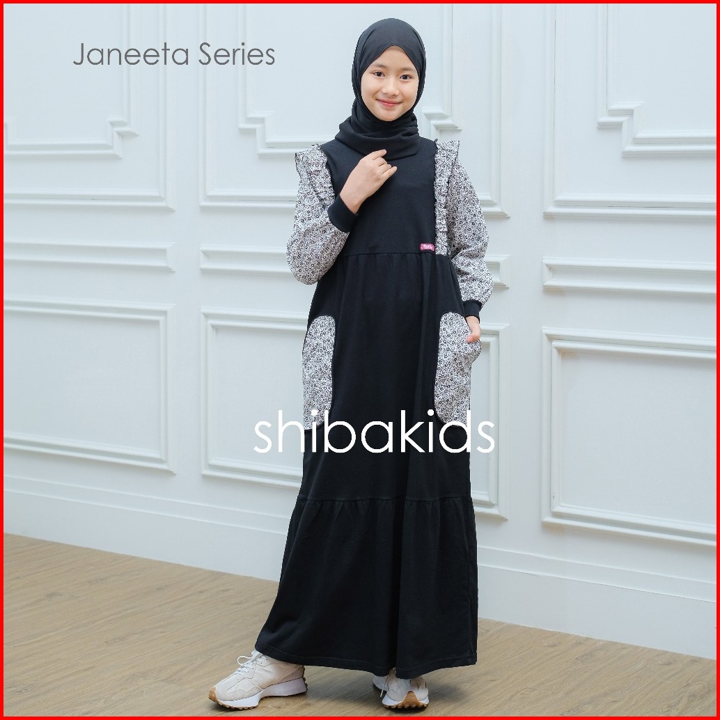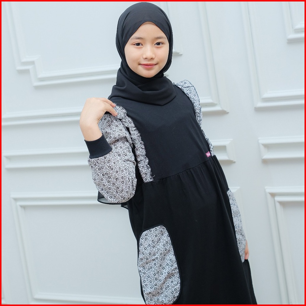 Jan01 Sibakids Janeeta Series Gamis Muslim Anak Perempuan Baju Dress Hitam Katun Comed Dan Jepang
