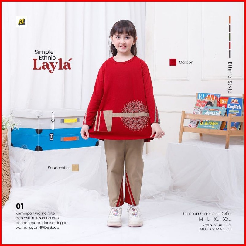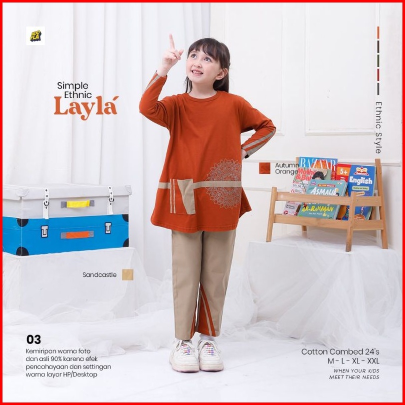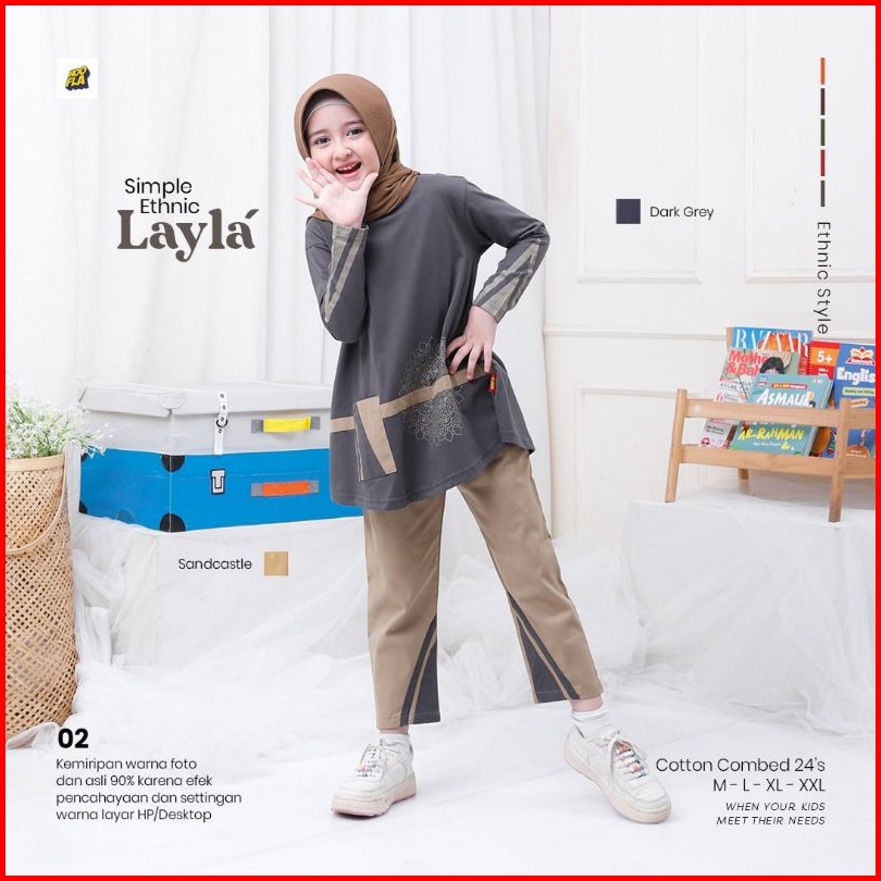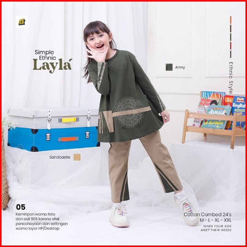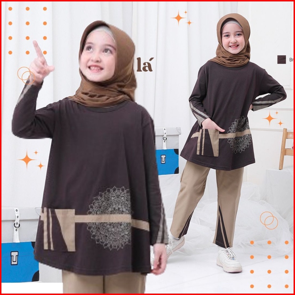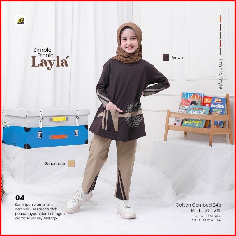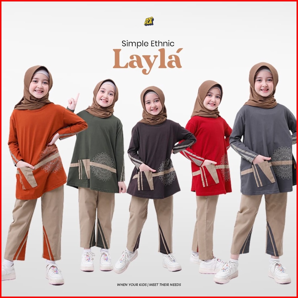 Hoofla Baju Setelan Anak Muslim Perempuan Set Kaos Celana Umur 5 - 12 Tahun Simple Etnic Layla