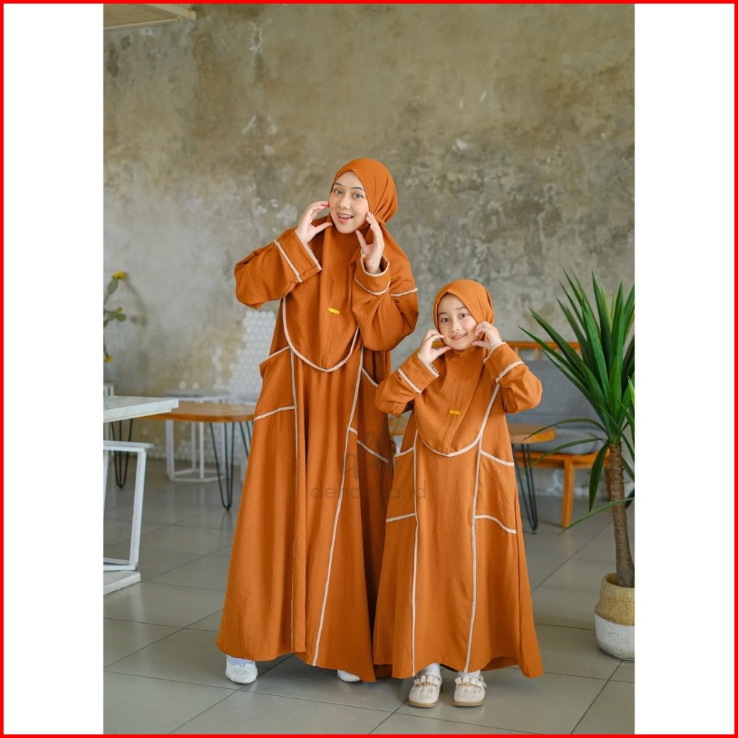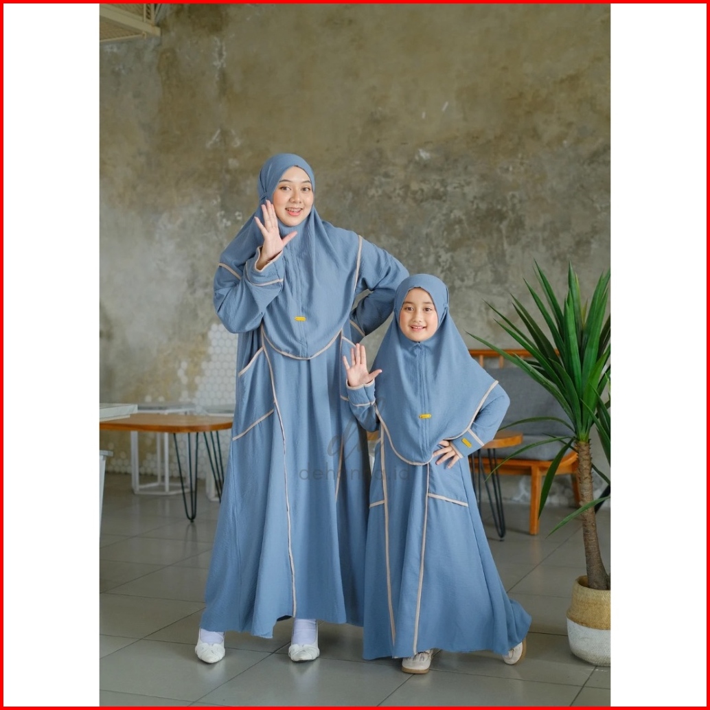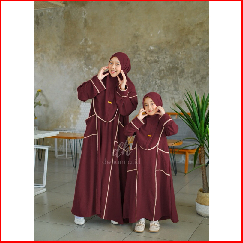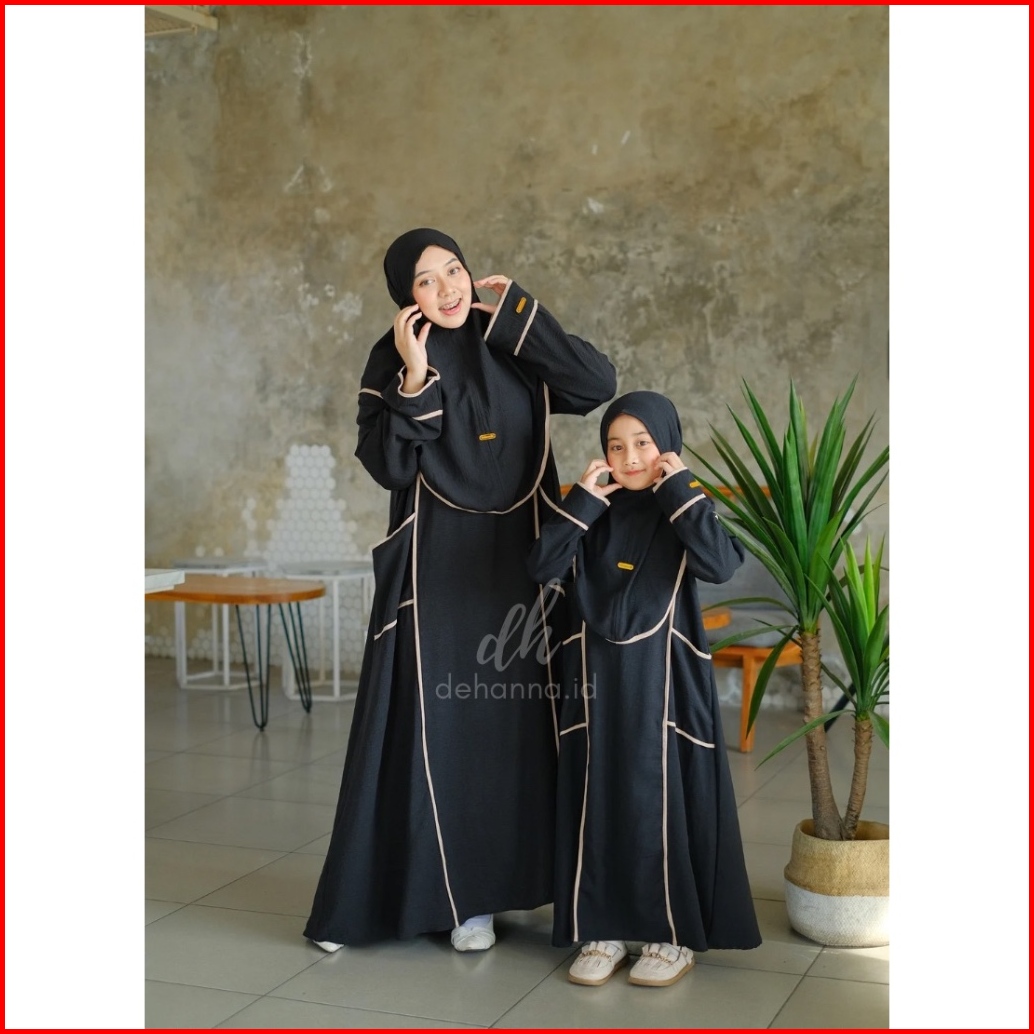 Abaya Set Hijab Couple Ibu Dan Anak Perempuan Baju Gamis Ngaji Atau Sehari Hari Bahan Premium