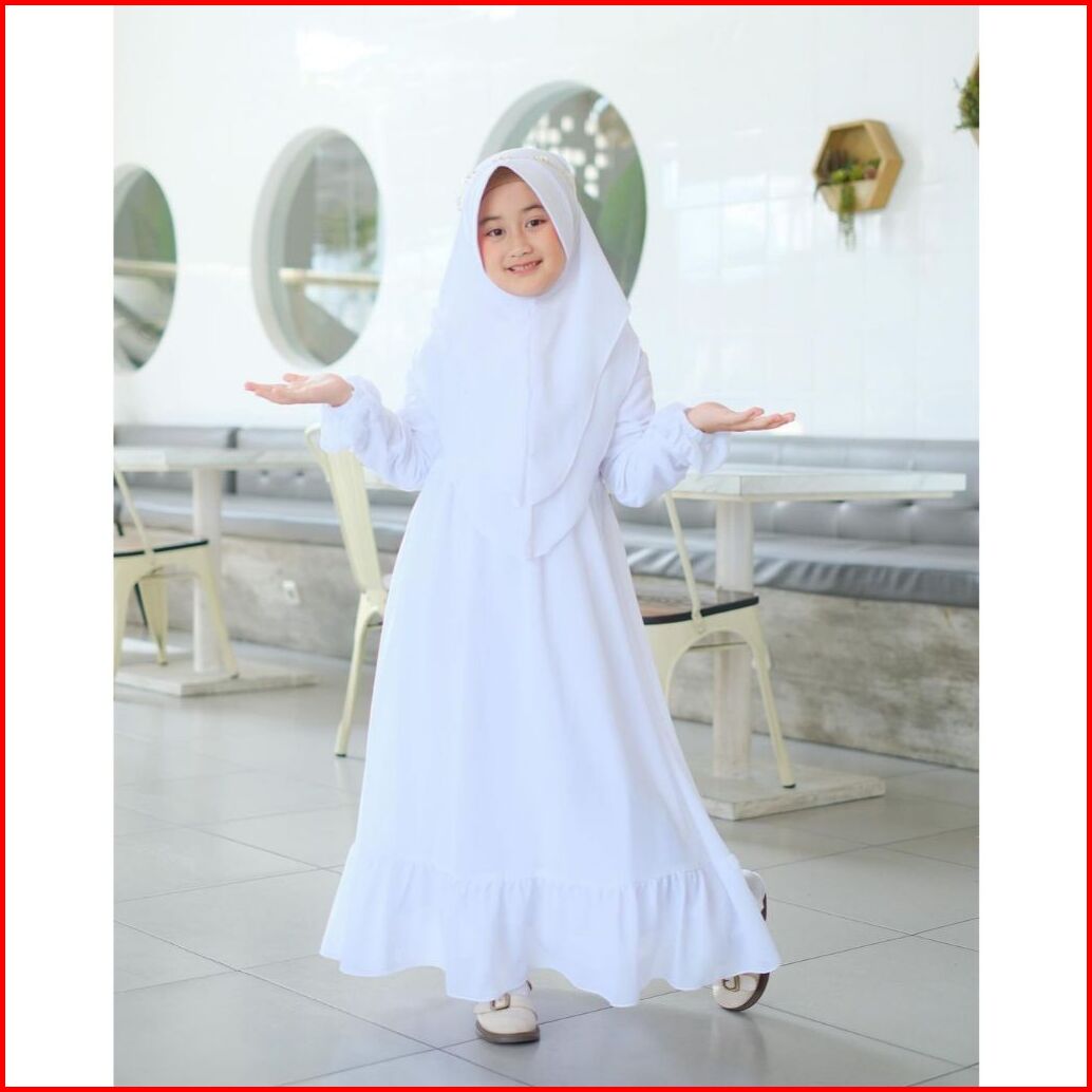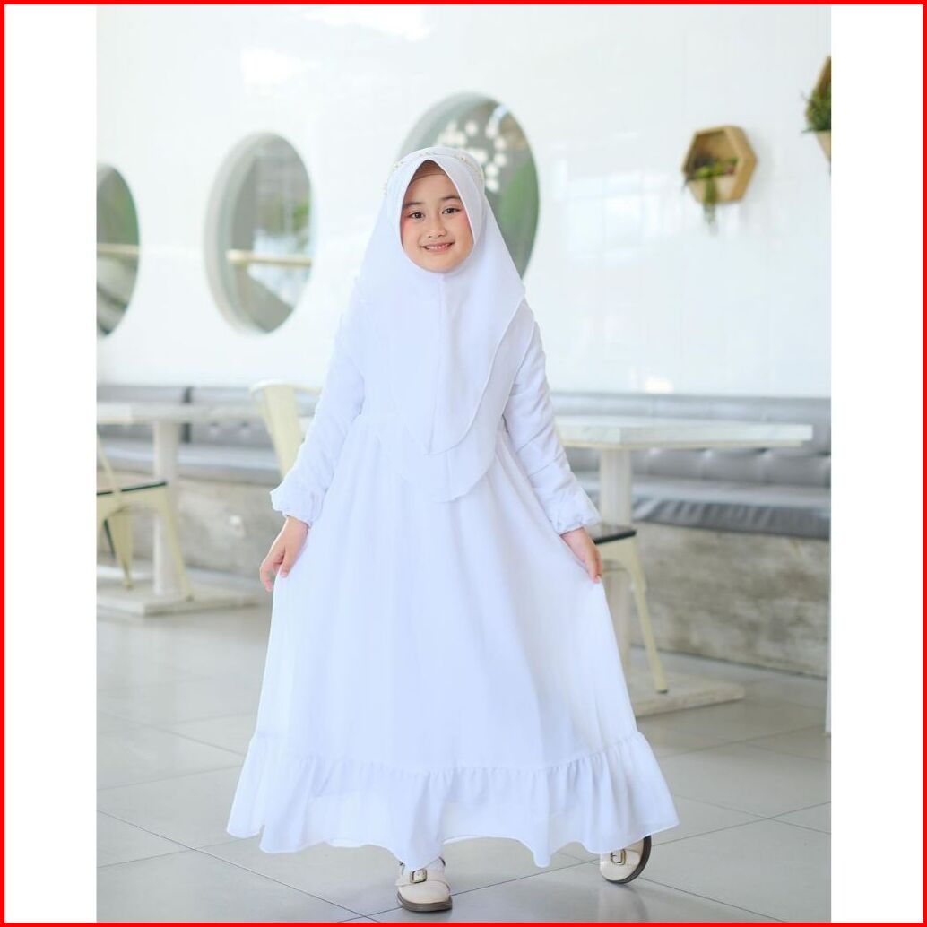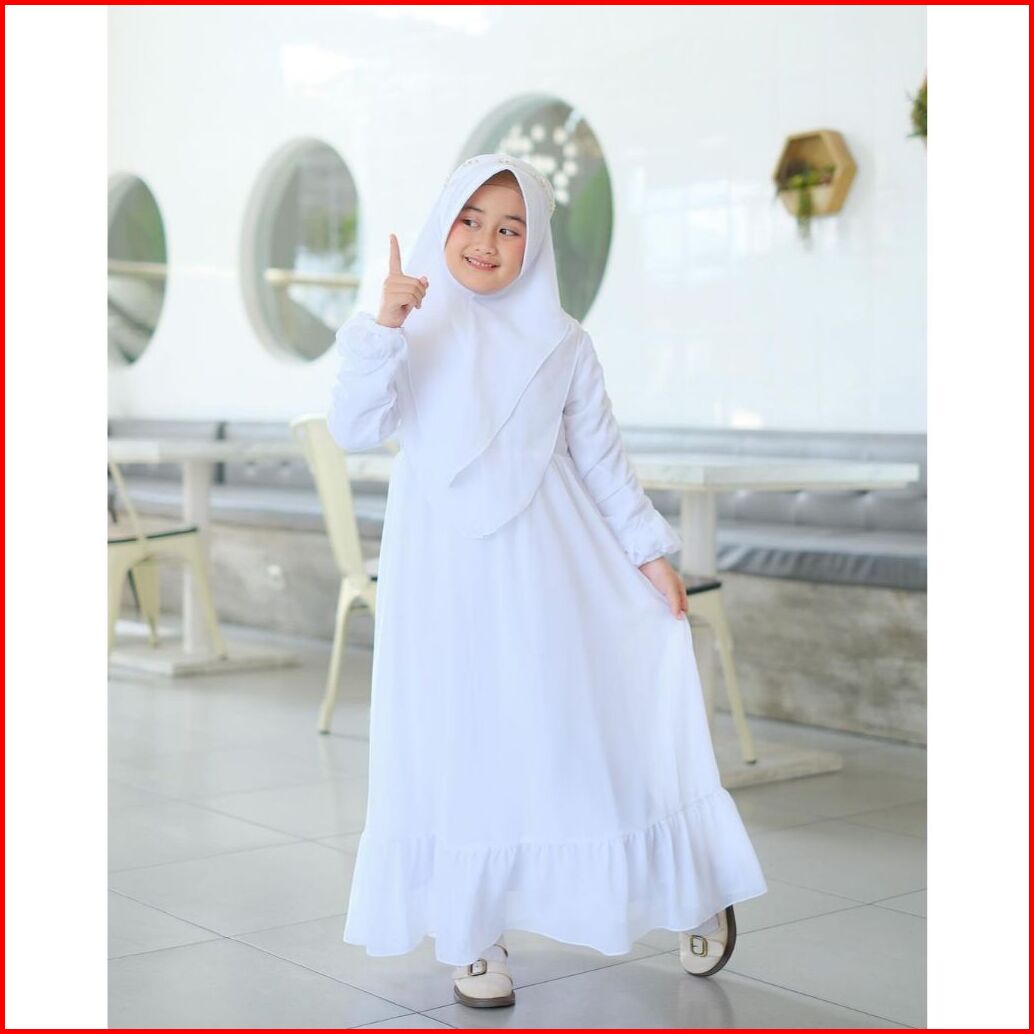 Gamis Putih Anak Perempuan Baju Muslim Anak Perempuan Set Jilbab 7-15 Tahun Gamis Putih Anak Tk