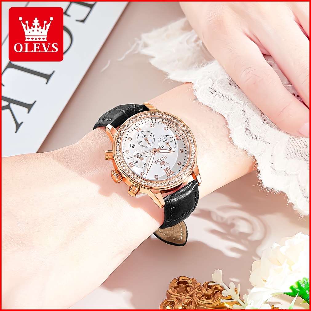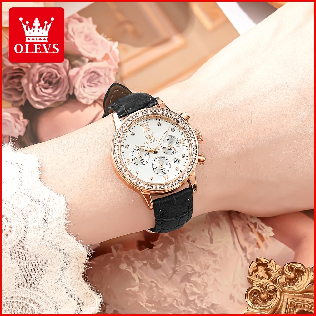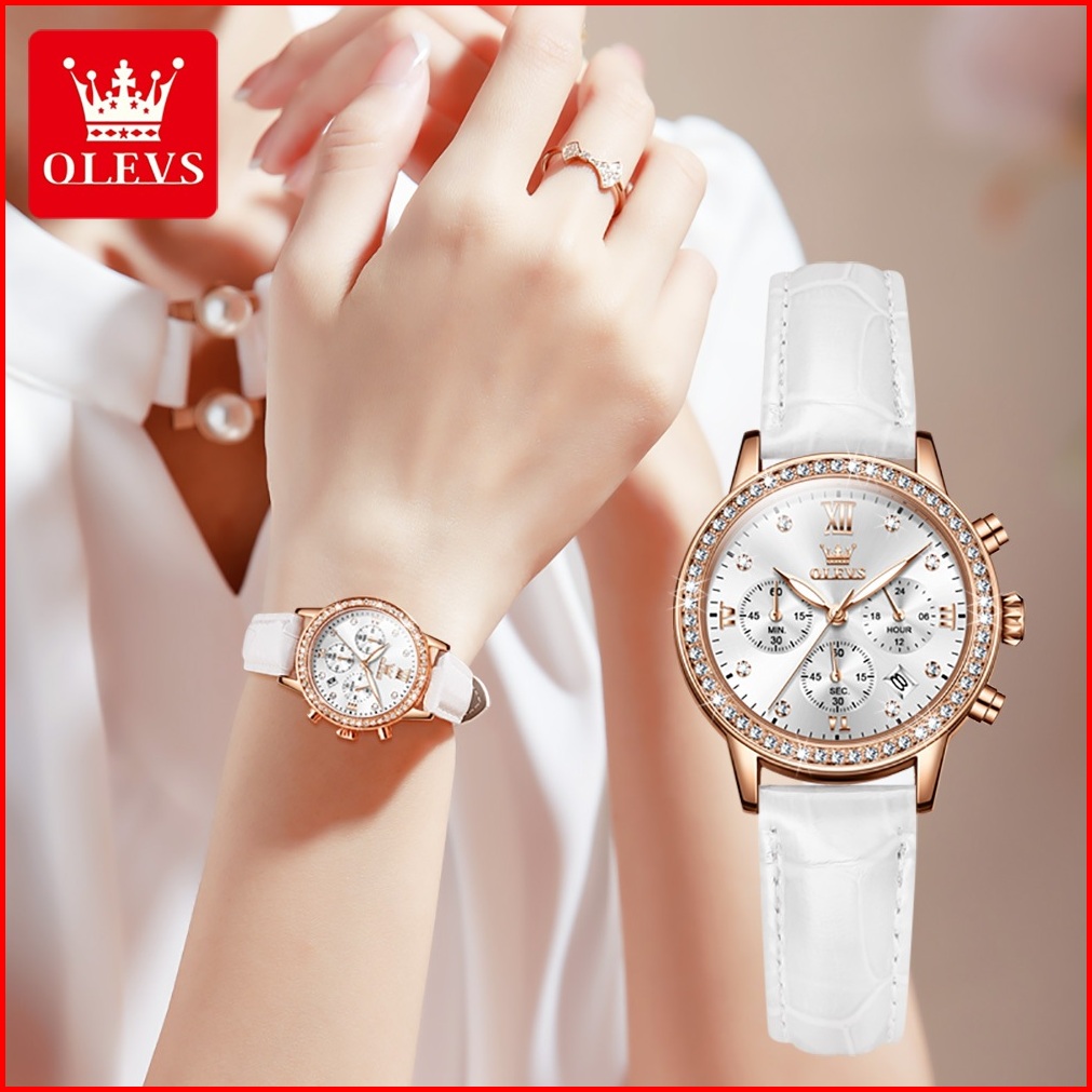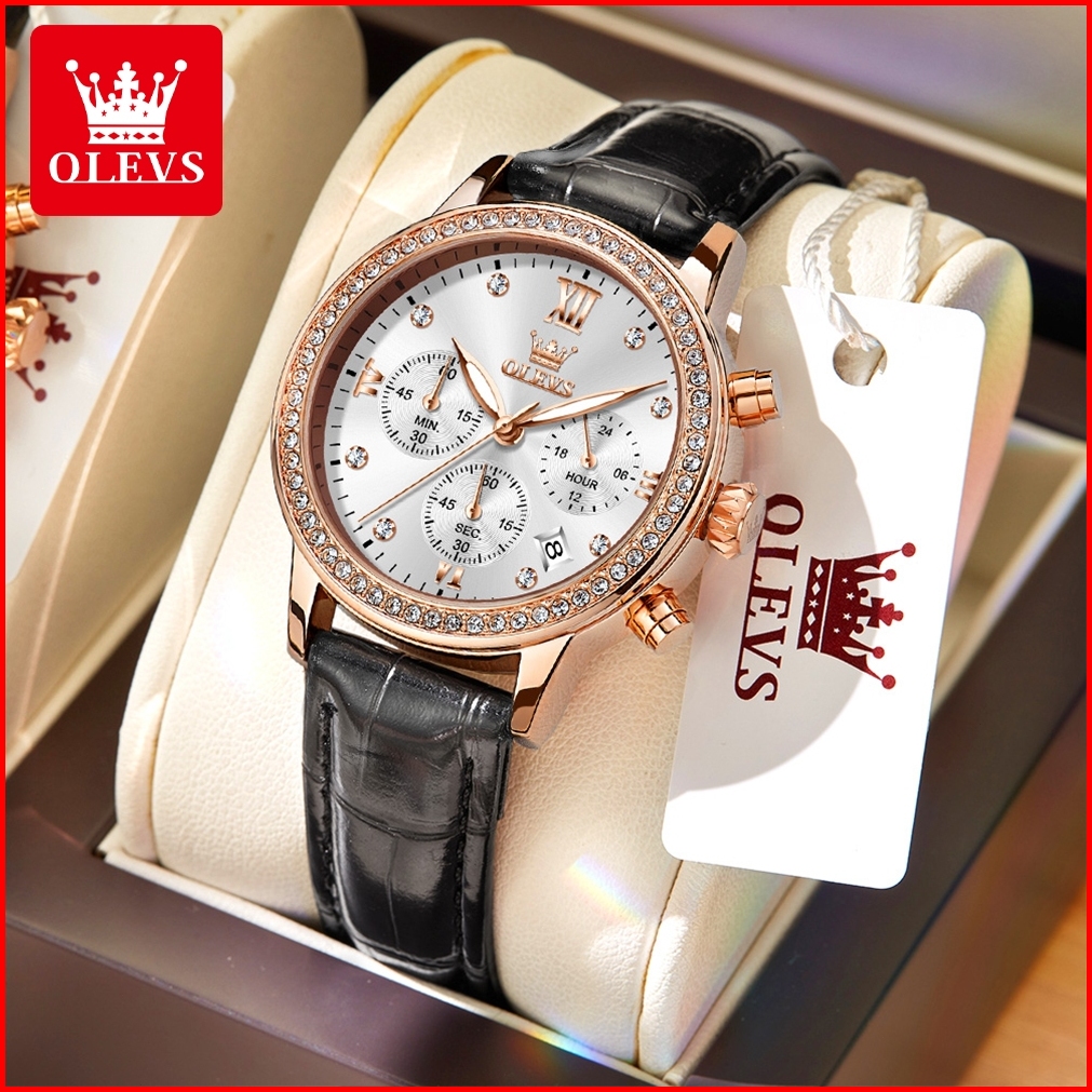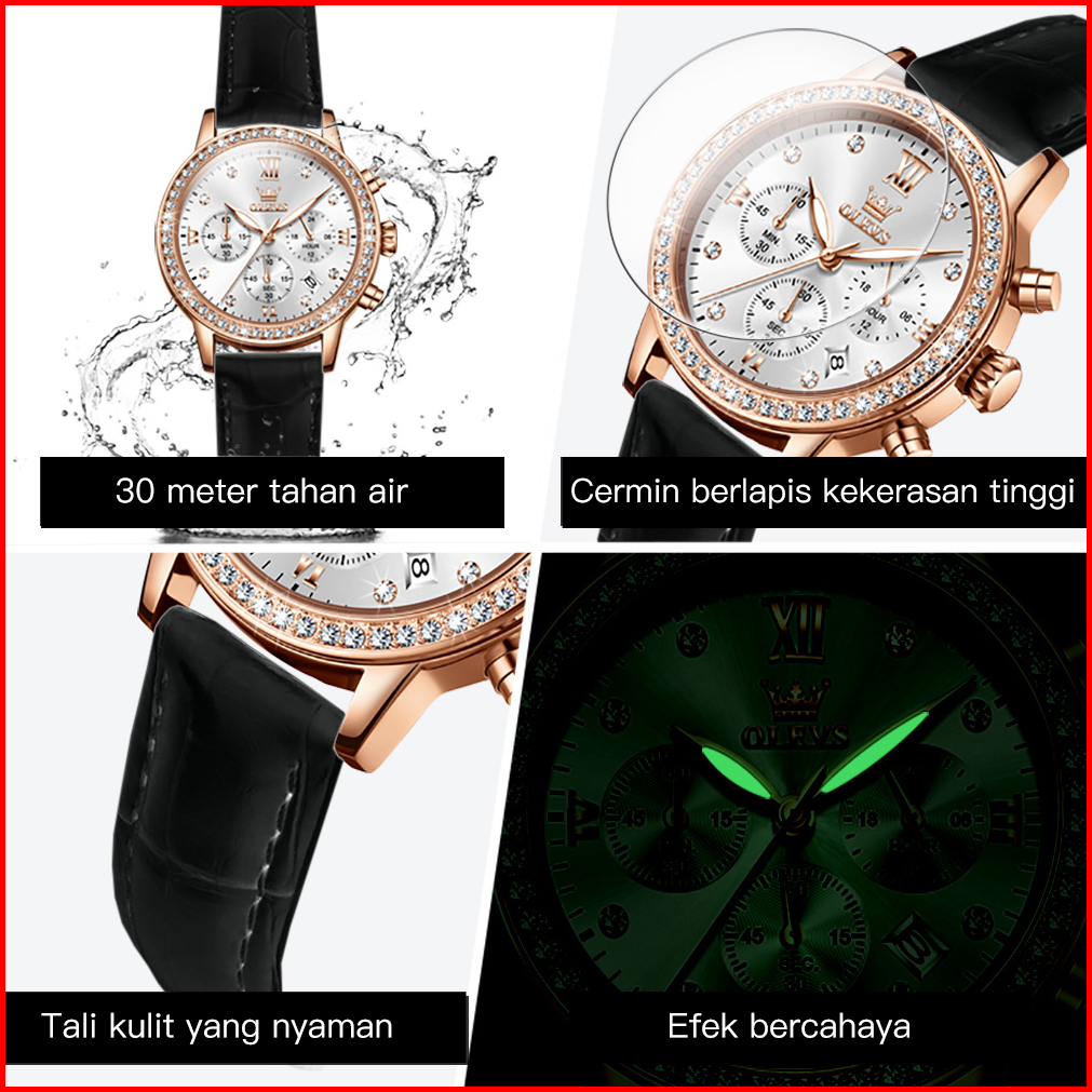Olevs Jam Tangan Wanita Anti Air Original Kecil Tahan Tali Kulit Kuarsa Chrono Women Watch Analog Stock Model 9933
