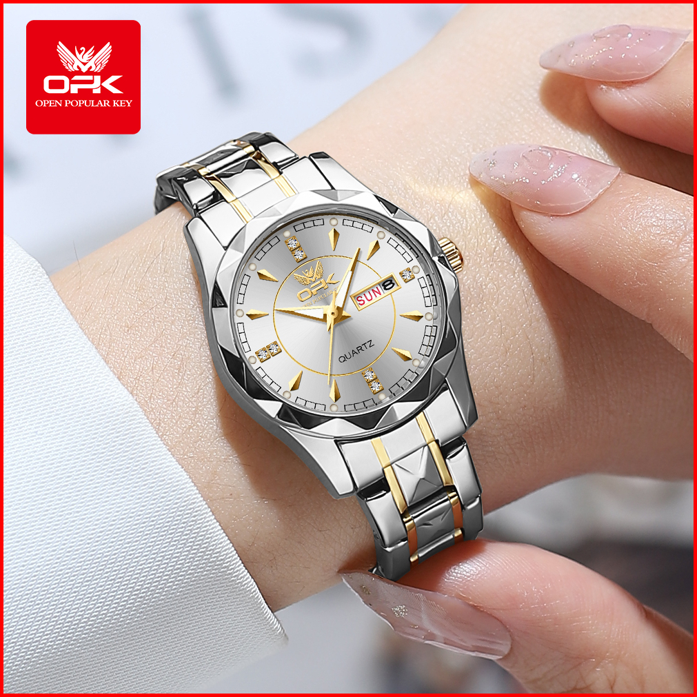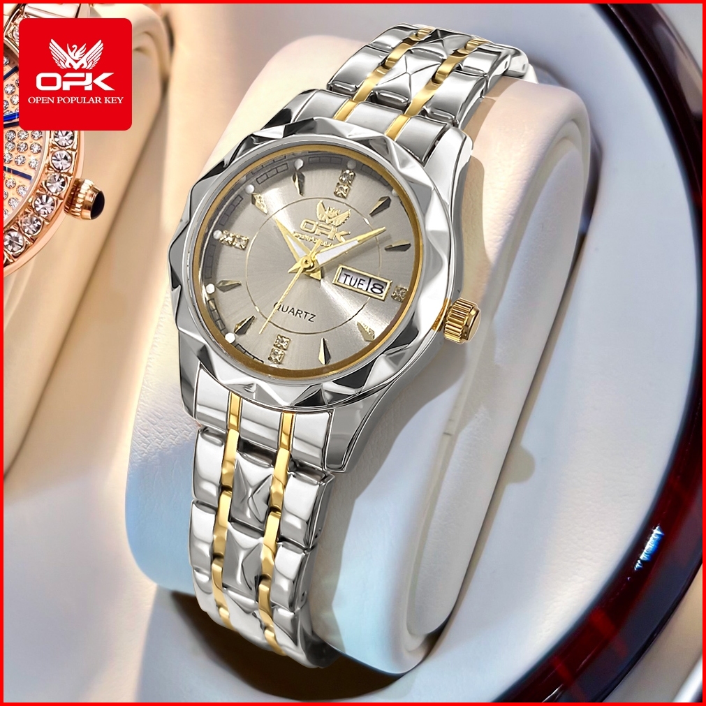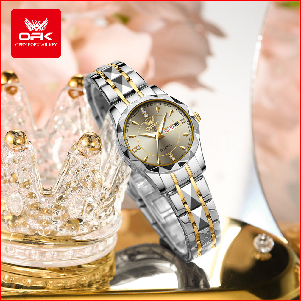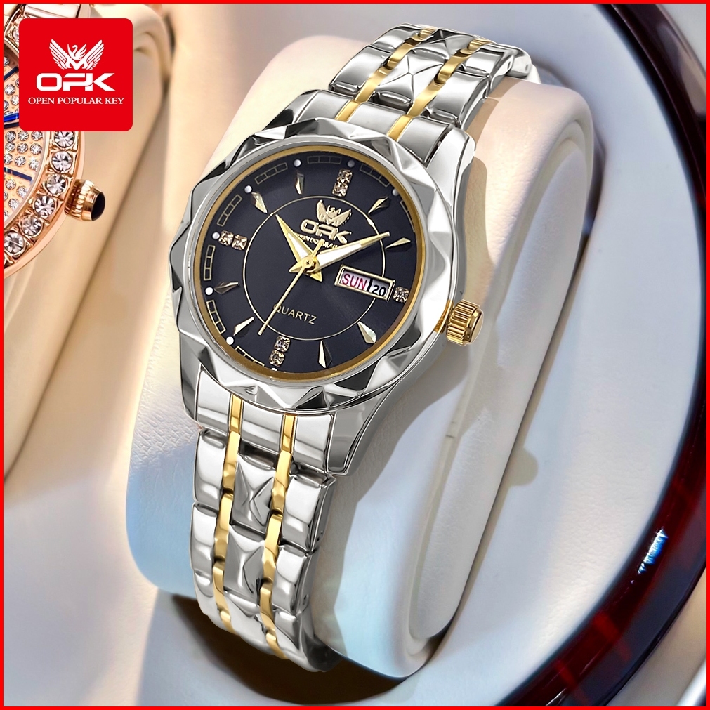Opk Jam Tangan Wanita Anti Air Original Kecil Korea Analog Tahan Air Putih Hitam Stainless Steel Women Watch Model 8151