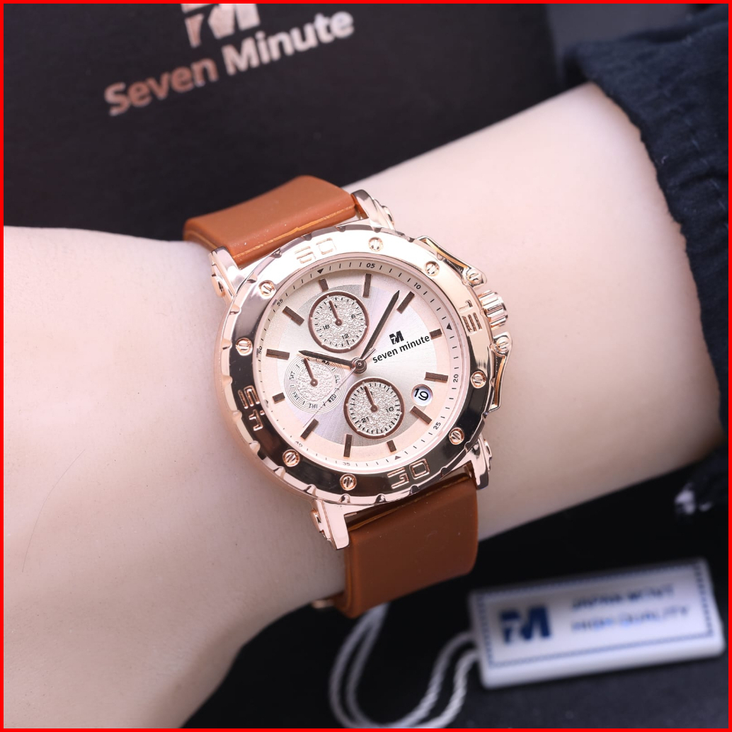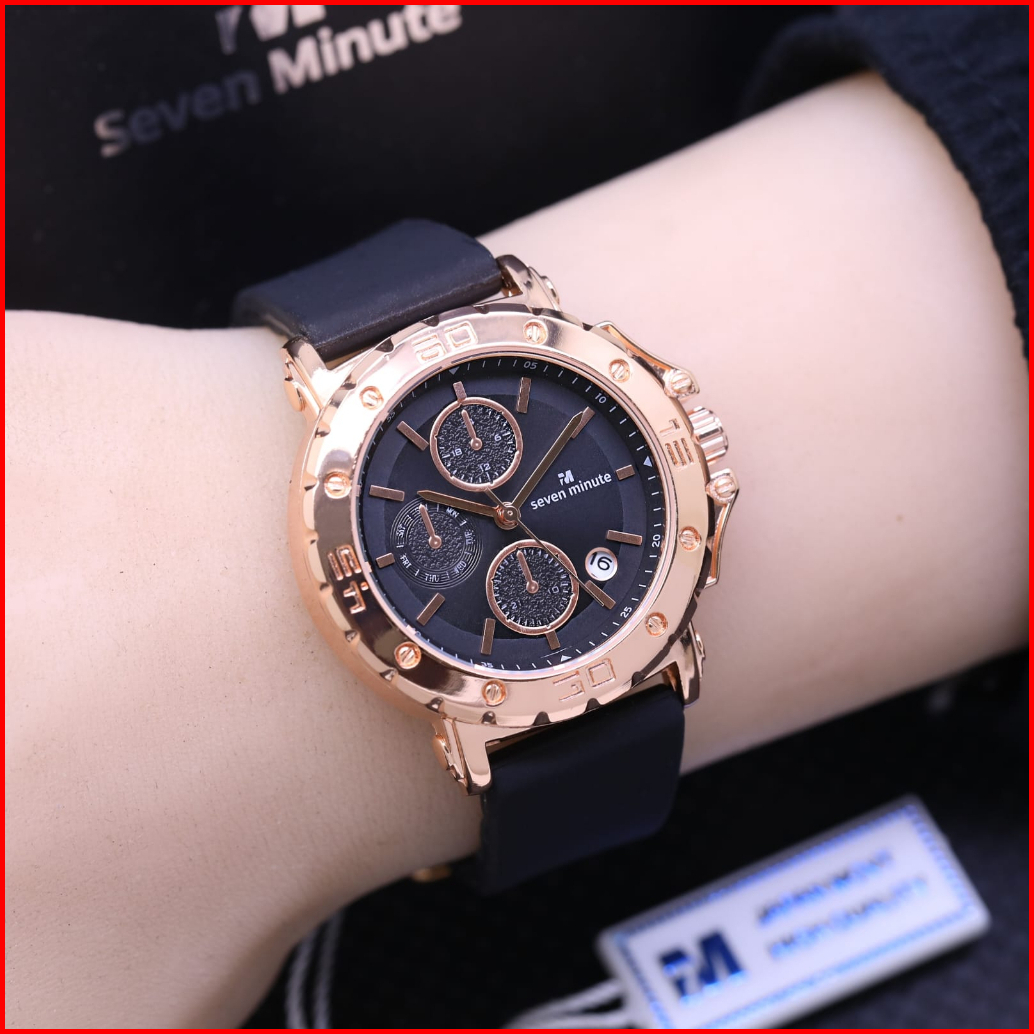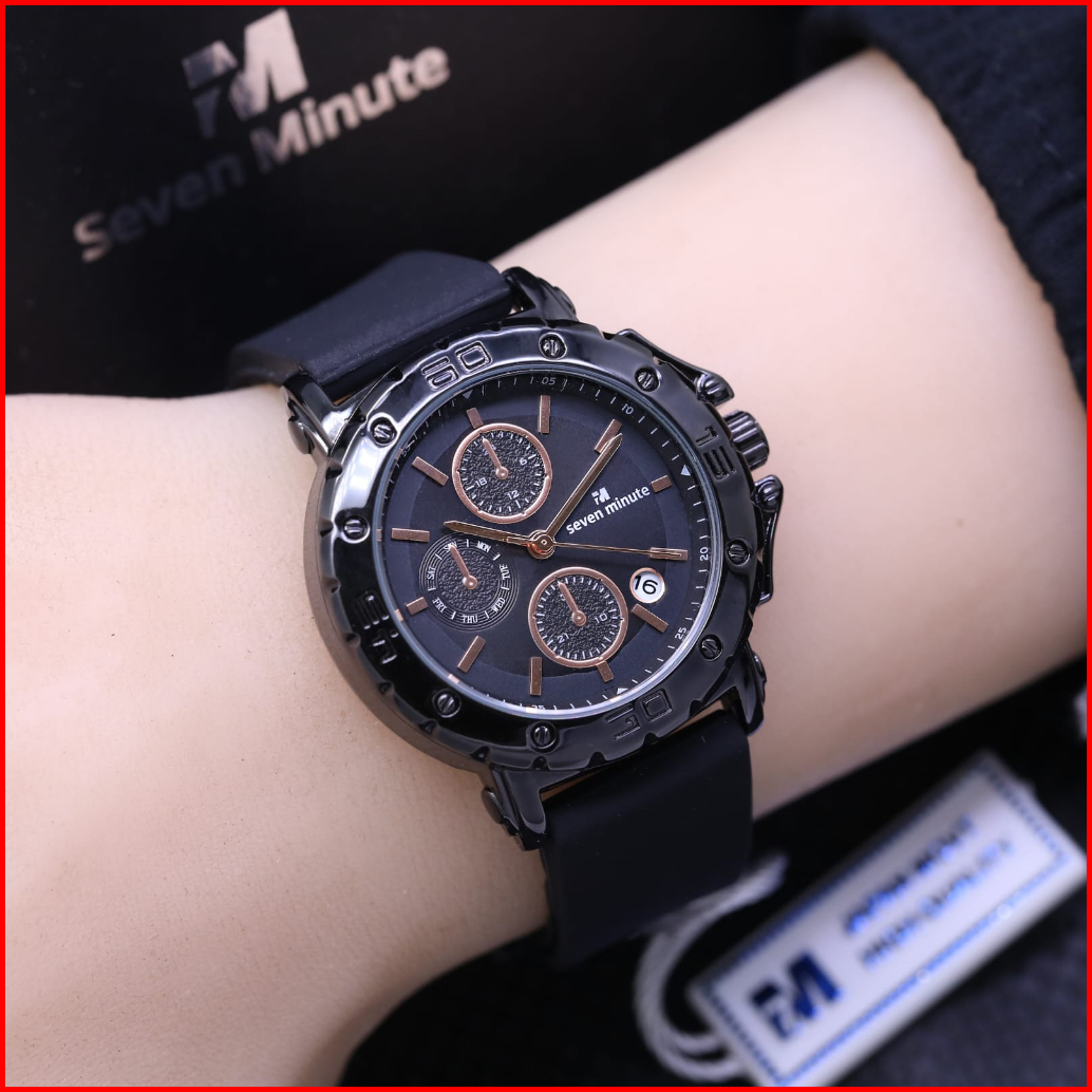 Jam Tangan Wanita Seven Minute-m701 Original Tali Rubber Body Bulat Chrono Variasi Tanggal Aktif Box Exclusive