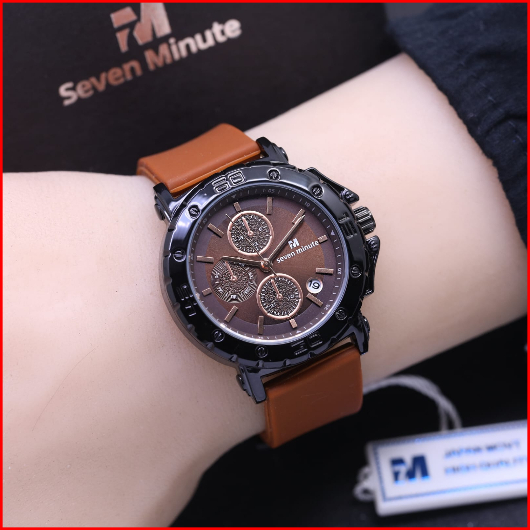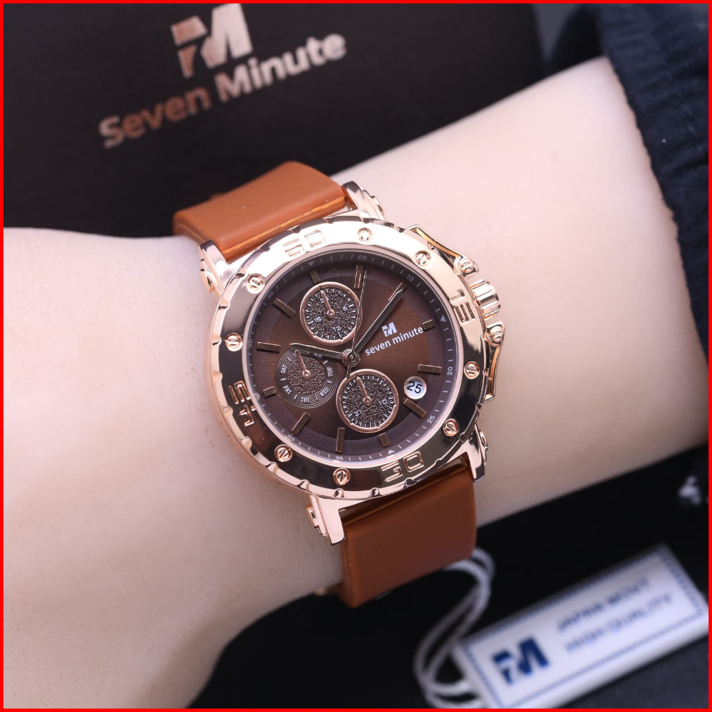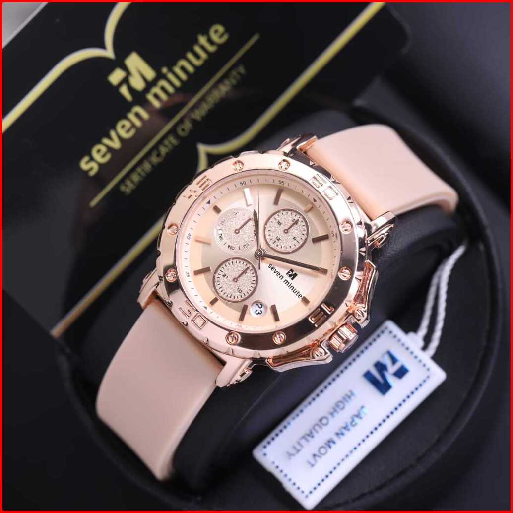 Jam Tangan Wanita Seven Minute-m701 Original Tali Rubber Body Bulat Chrono Variasi Tanggal Aktif Box Exclusive
