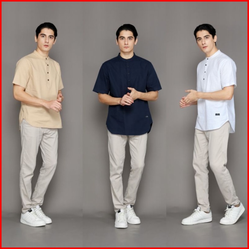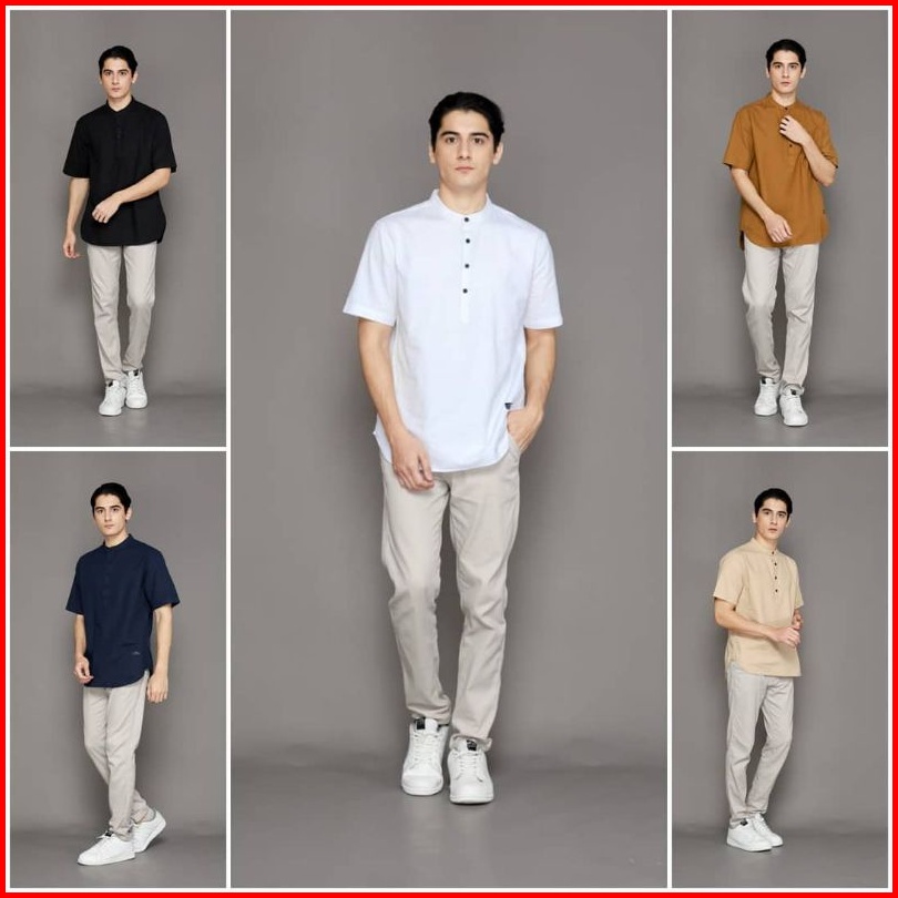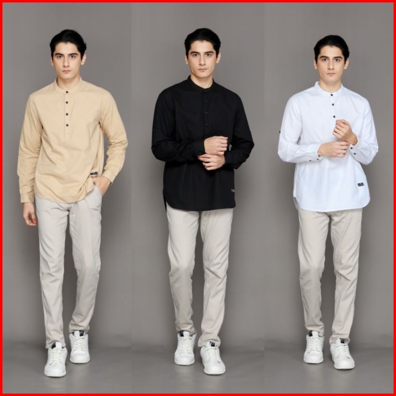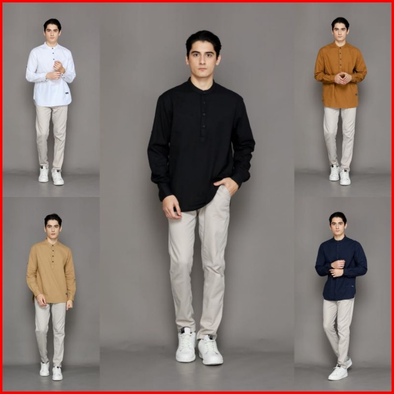 Kemeja Koko Pria- Baju Koko Linen - Kurta Linen - Koko Lengan Panjang - Kemeja Koko Lengan Pendek - Baju Koko Pria Hitam