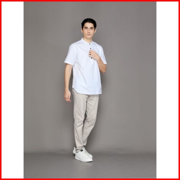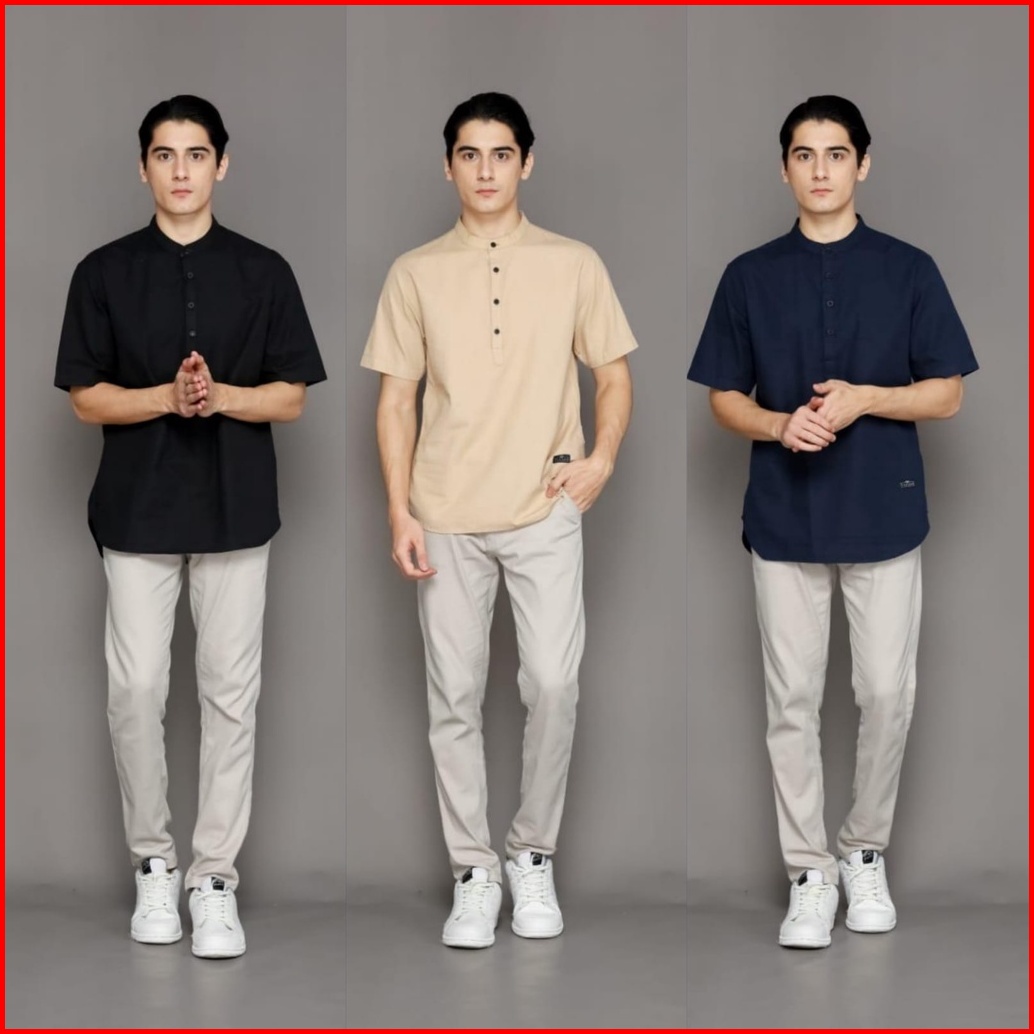 Kemeja Koko Pria Lengan Pendek Katun Linen Premium - Baju Koko Linen Basic Polos - Kemeja Koko Lengan Pendek - Baju Koko