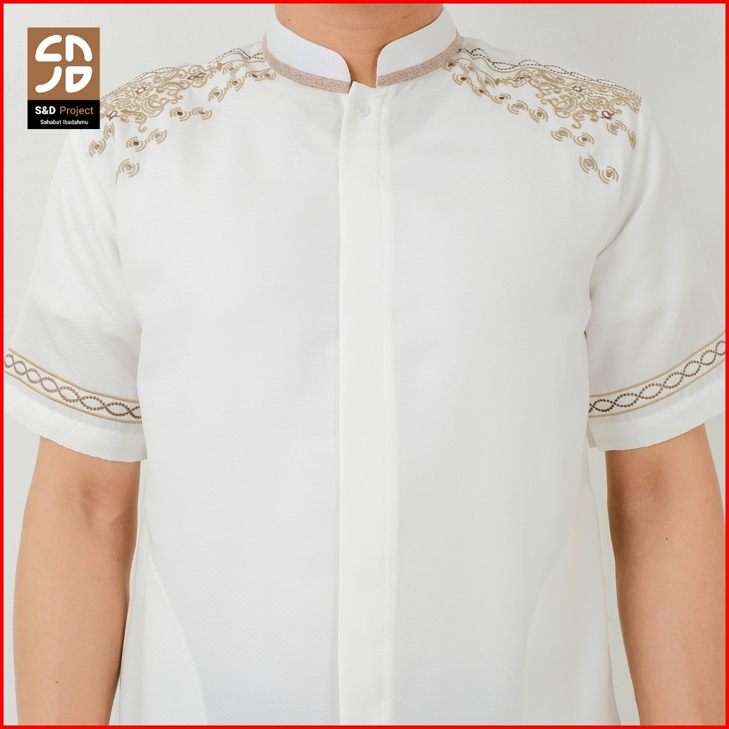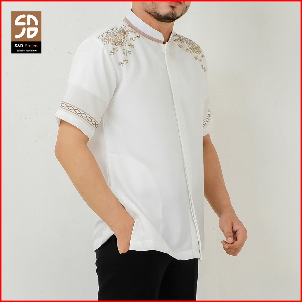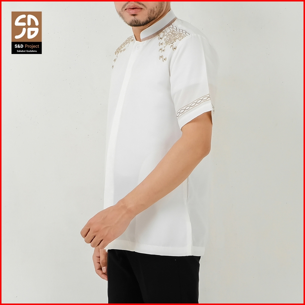 S D Project Baju Koko Polikatun Bordir Lengan Pendek Ukuran S M L Xl Xxl 3xl 4xl - Putih Tulang
