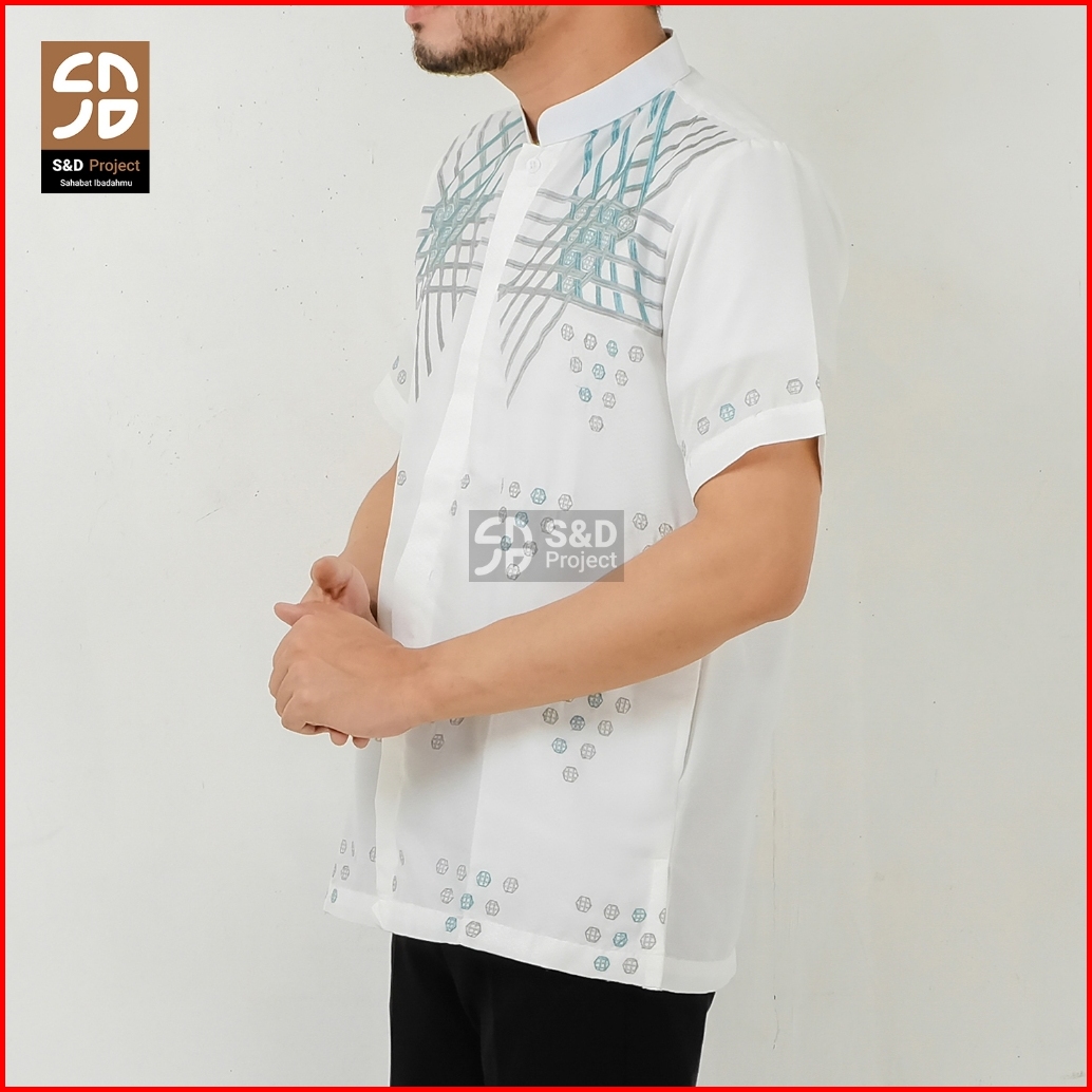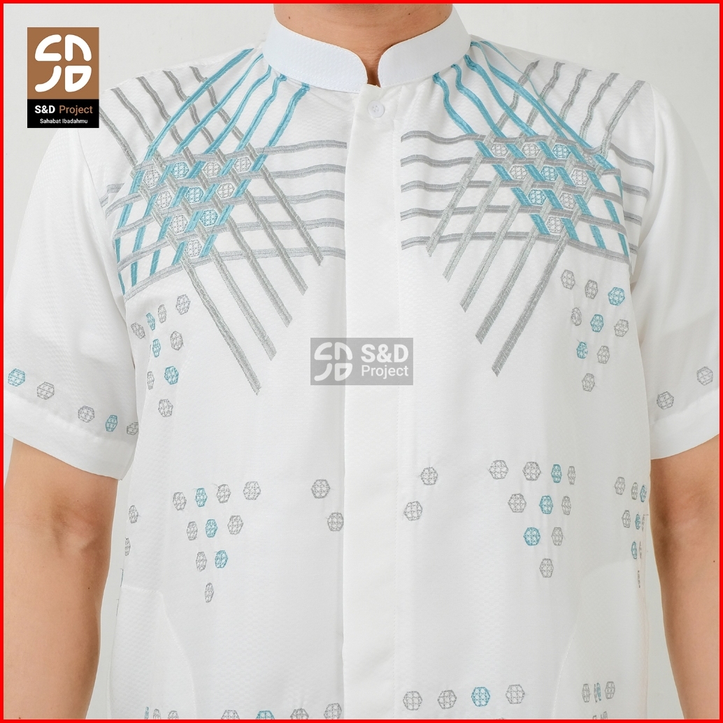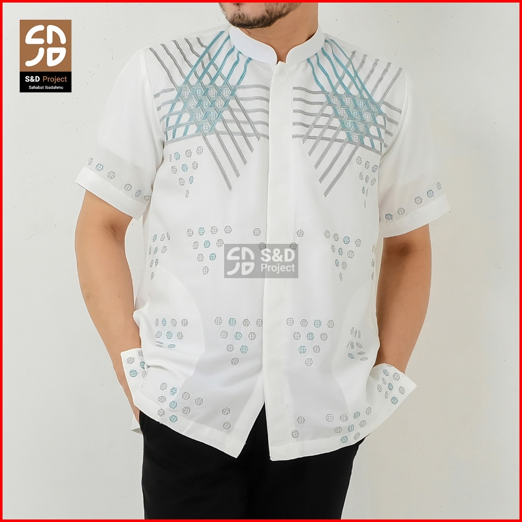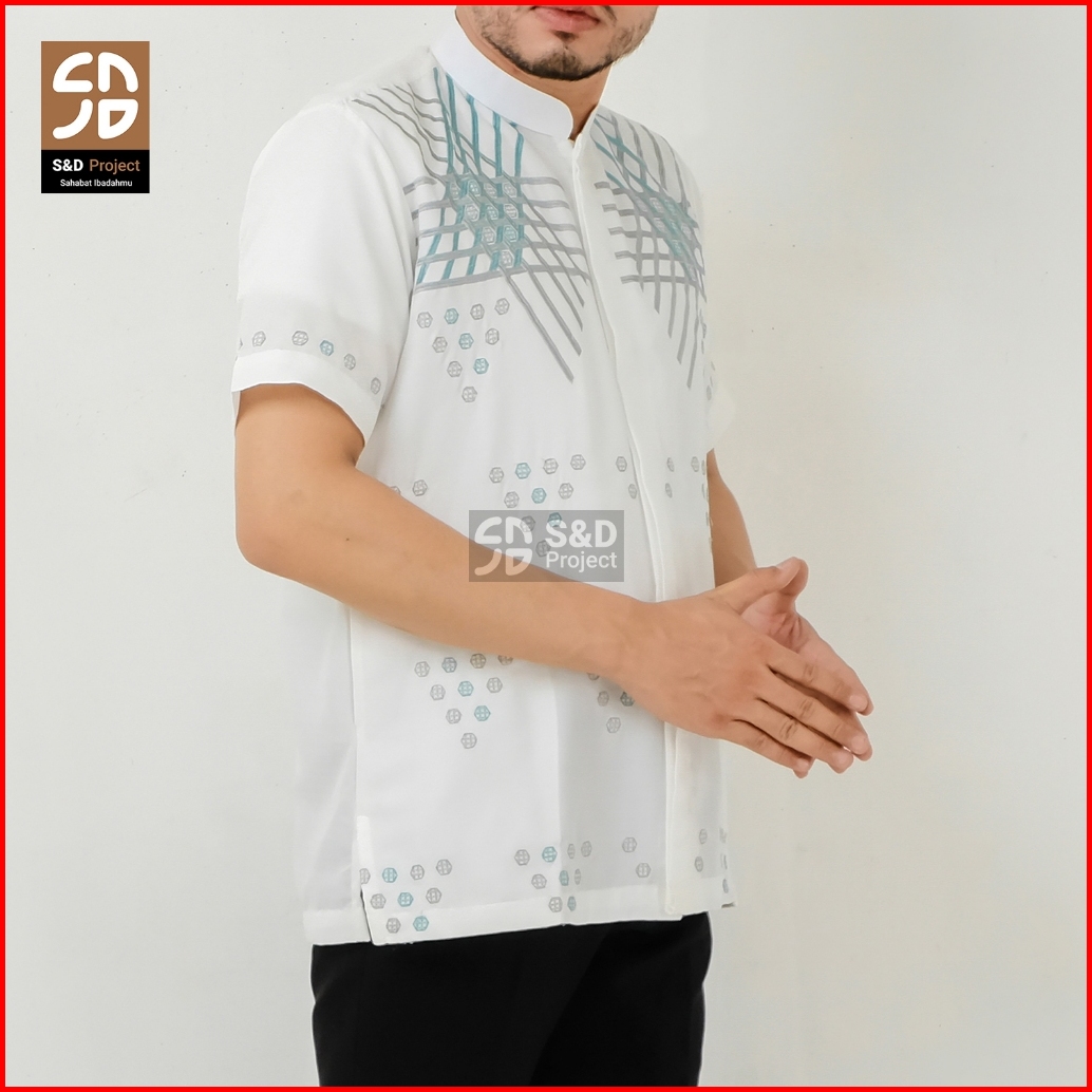 S D Project Baju Koko Polikatun Bordir Lengan Pendek Ukuran S M L Xl Xxl 3xl 4xl - Putih Tulang