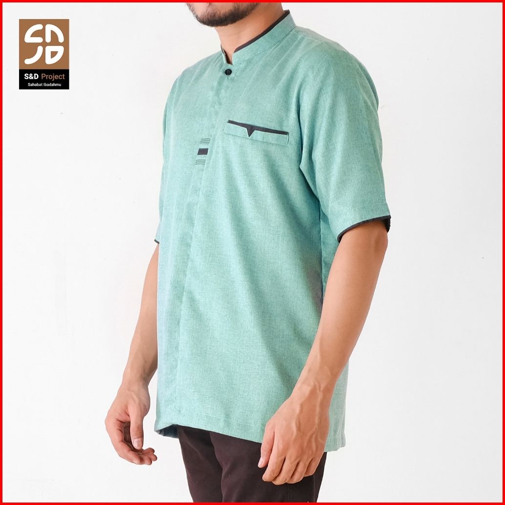S D Project Baju Koko Katun Madinah Polos Lengan Pendek Ukuran M L Xl 2xl 3xl 4xl - Hijau Tosca