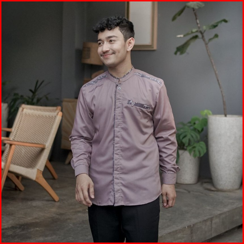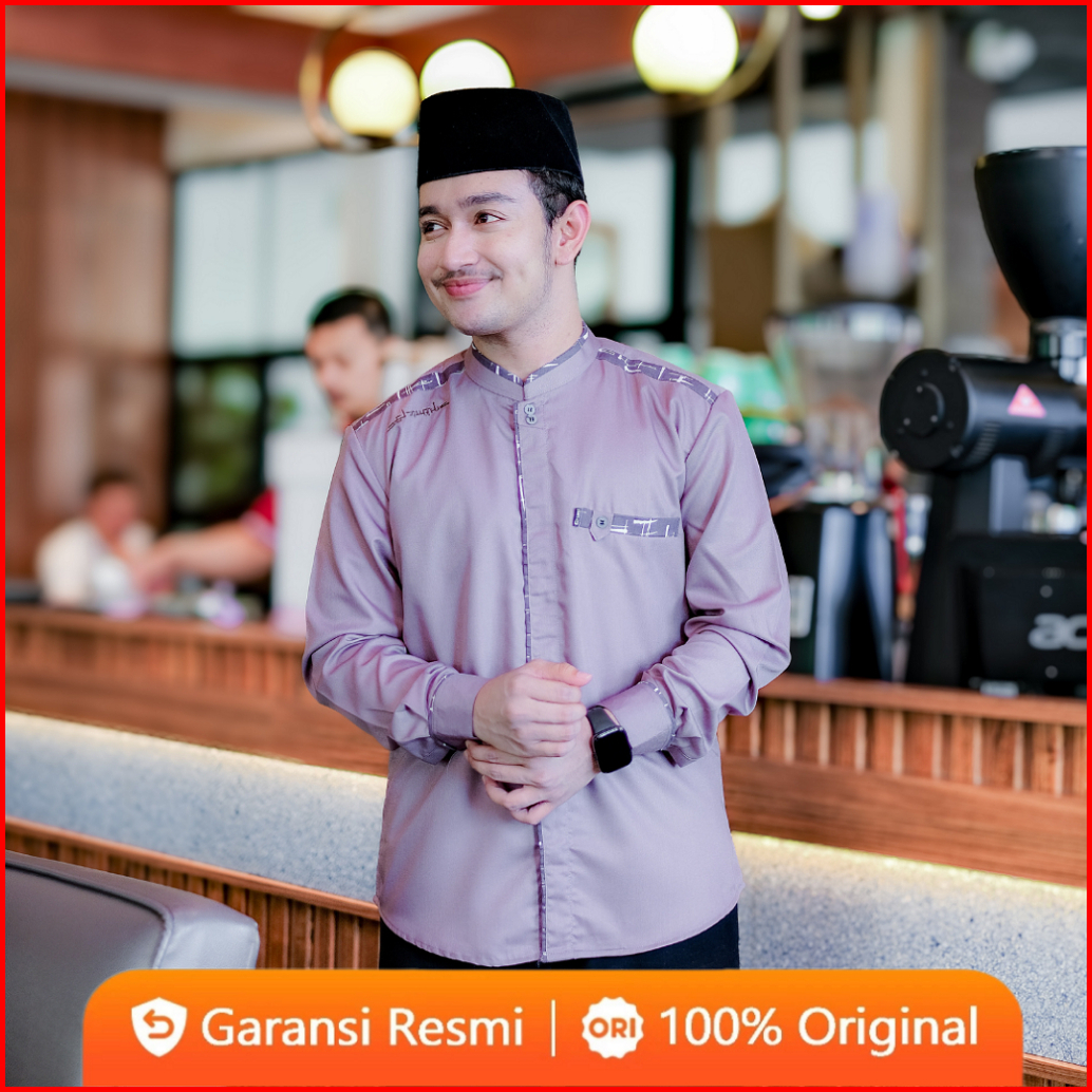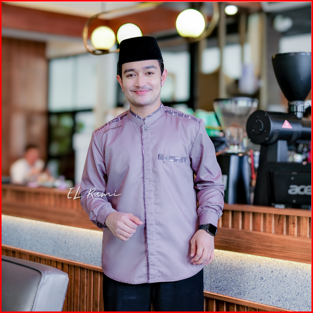 Baju Koko Elrumi Terbaru Warna Lilak Lengan Panjang Motif Yisunsin