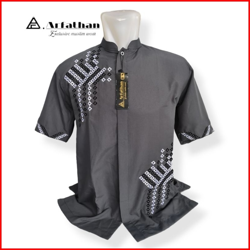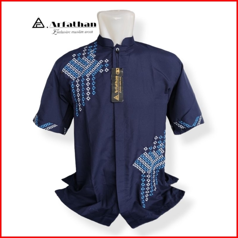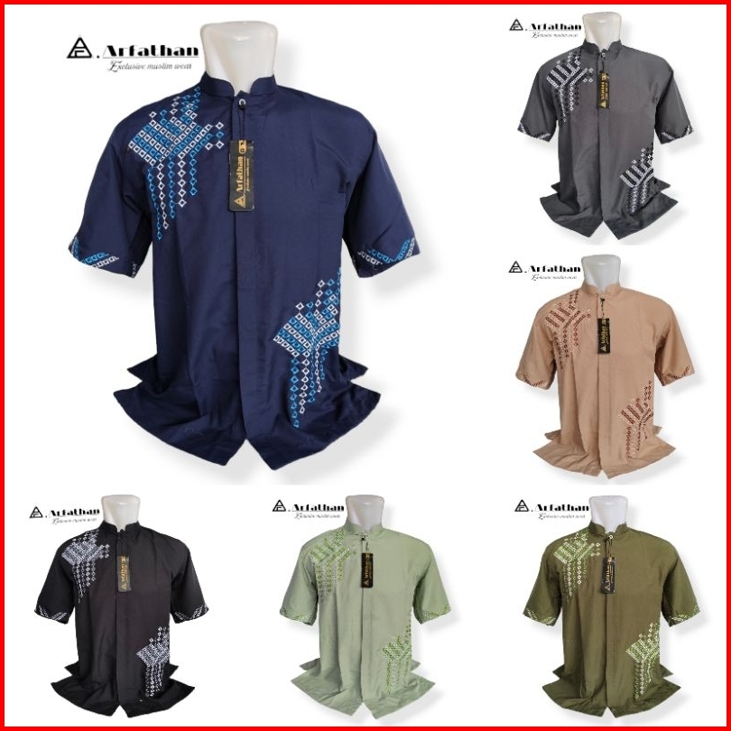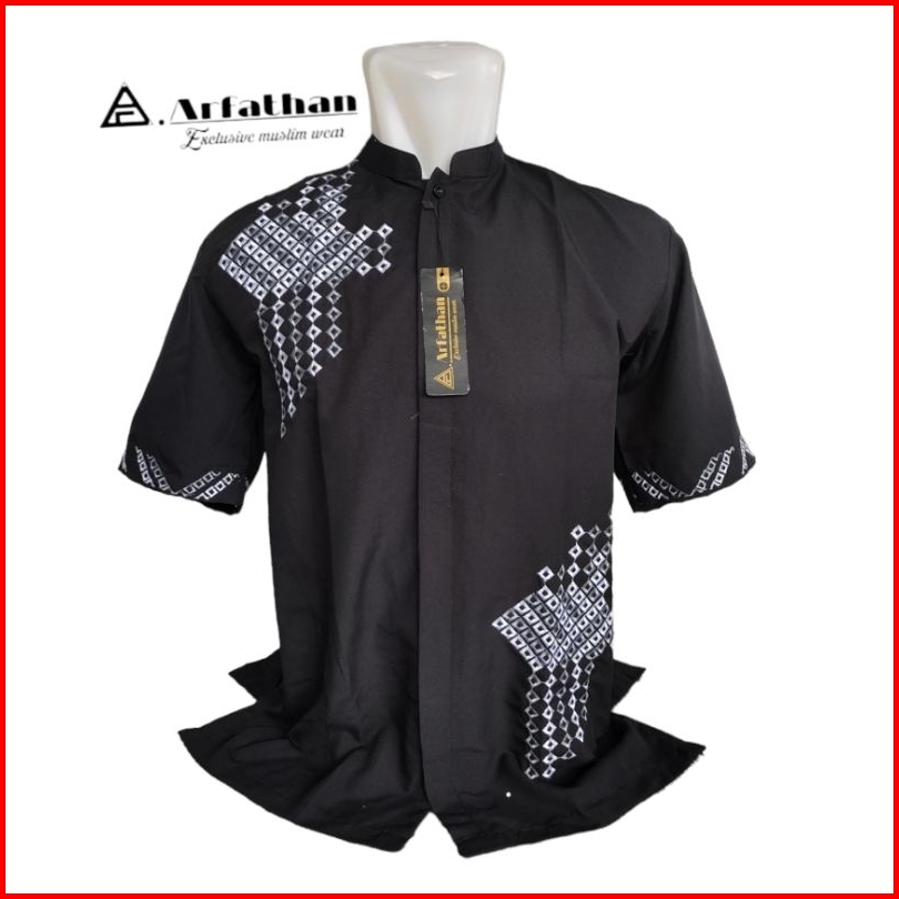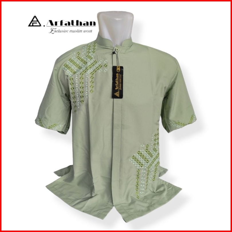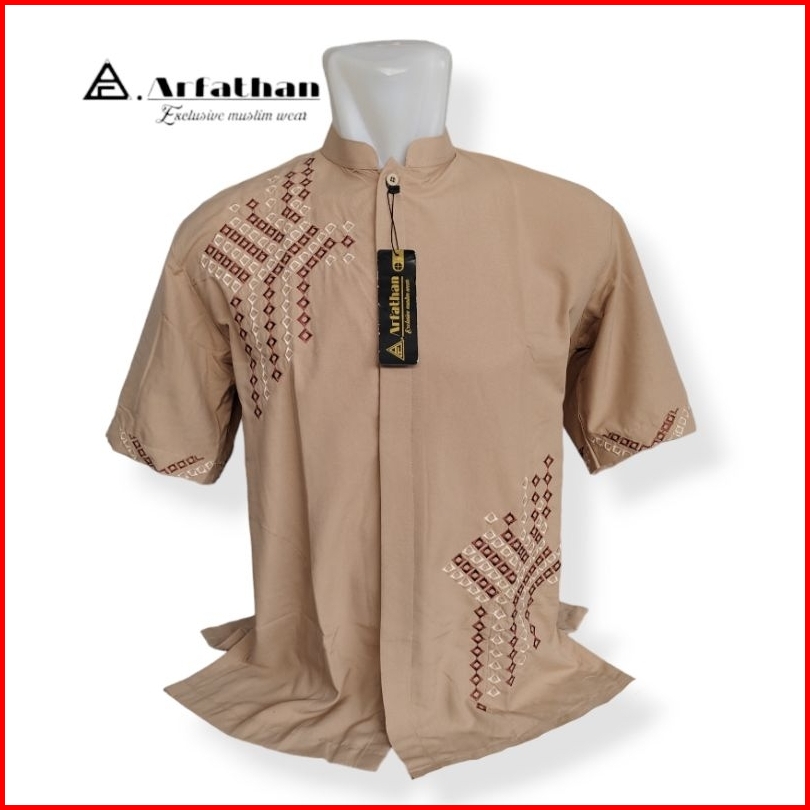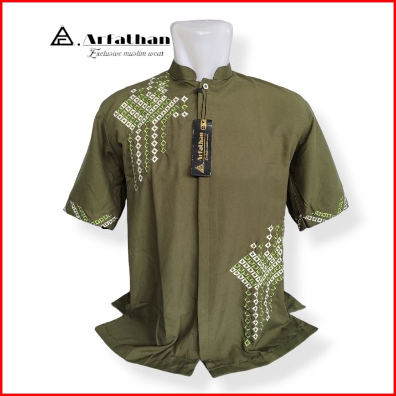 Baju Koko Muslim Pria Lengan Pendek Motif Bordir Ketupat Arfathan Arf-11