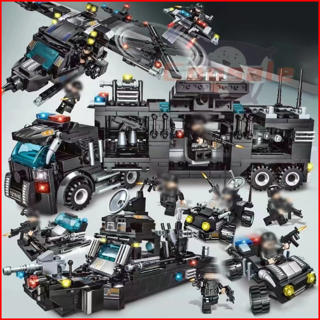 Mainan 1000pcs Brick Blok City Police Vehicle Hawk Swat Army Minicraft City Kapal Mainan Merakit Bangunan Kapal Perang B