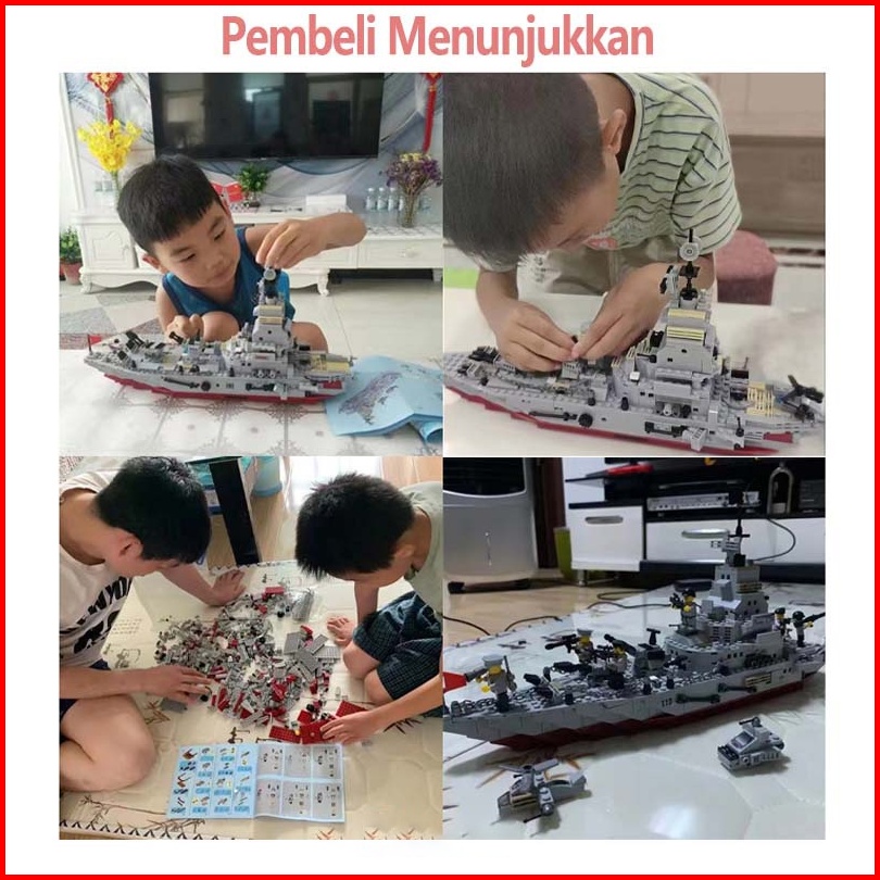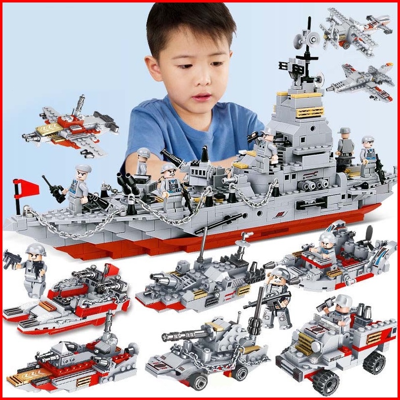 Ready Kakkapal Induk Mainan Blok 1000pcs Military Warship Boat Airplane Car Set Mainan Anak Laki Laki