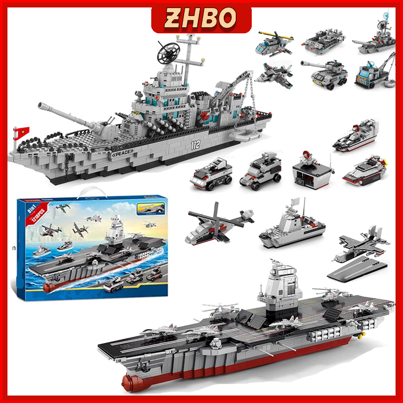 Zhbo Mainan Anak Laki-laki Kapal Induk Ship Block 3d Susun Puzzle Edukasi Mainan 8 9 10 Tahun