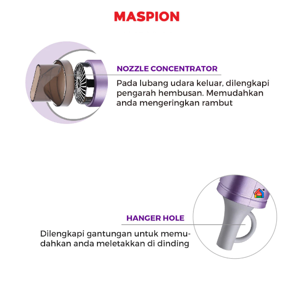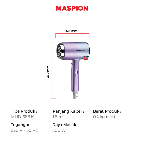 Maspion Hair Dryer Pengering Rambut MHD-688 K Kecepatan Tinggi Cool Shot
