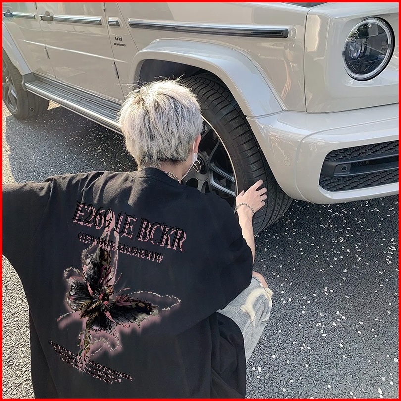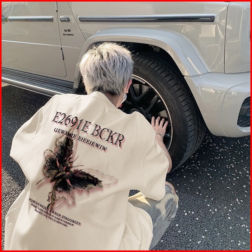 Auzy Kaos Pria Flower Butterfly Baju Distro Original 100 Retro Style Tshirt Longgar Kaos Import Baju T Shirt Pria