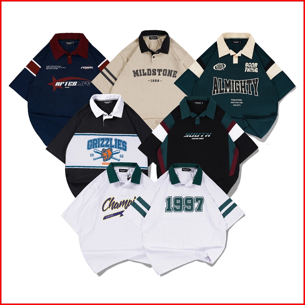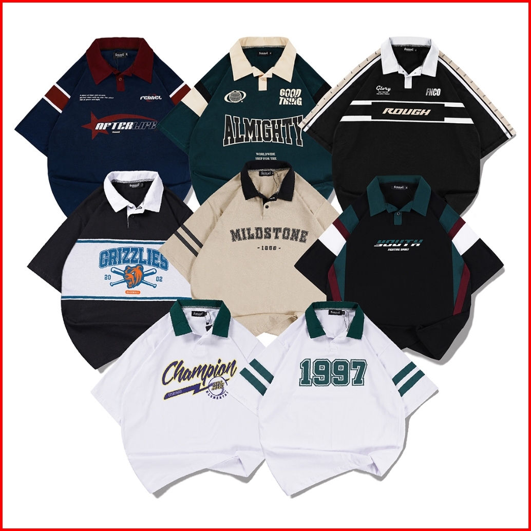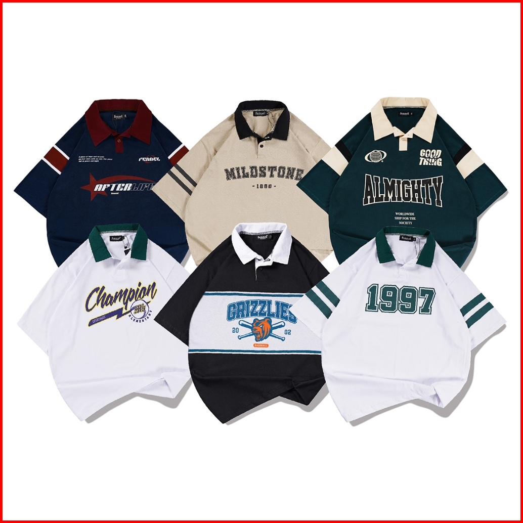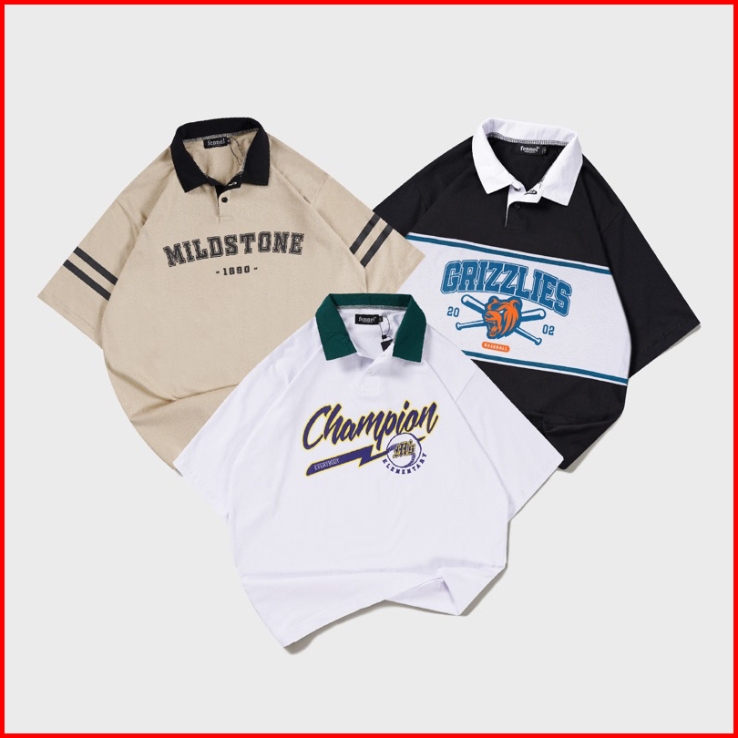 N01220 T-shirt Oversize Rugby Lengan Pendek Motif Champion Tna