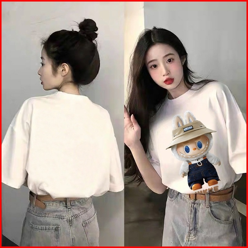 Forteid T-shirt Lengan Pendek Baju Kaos Oversize Wanita Baju Kaus Wanita Korea Baju Atasan Wanita Terbaru Cetakan Labubu