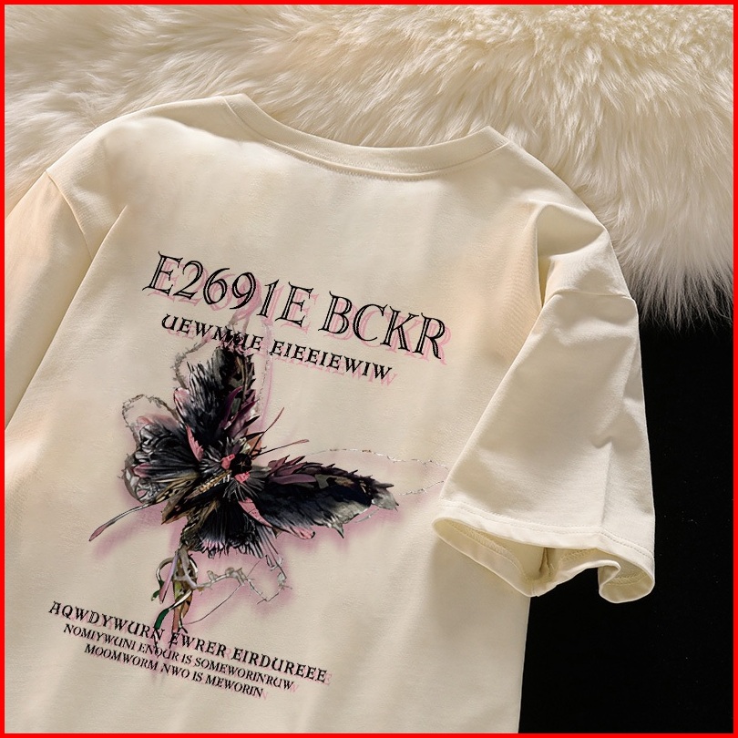 Po Floret Putih Kaos Oversize Lengan Pendek Pink Butterfly Korean Style Wanita Baju Atasan Wanita Terbaru