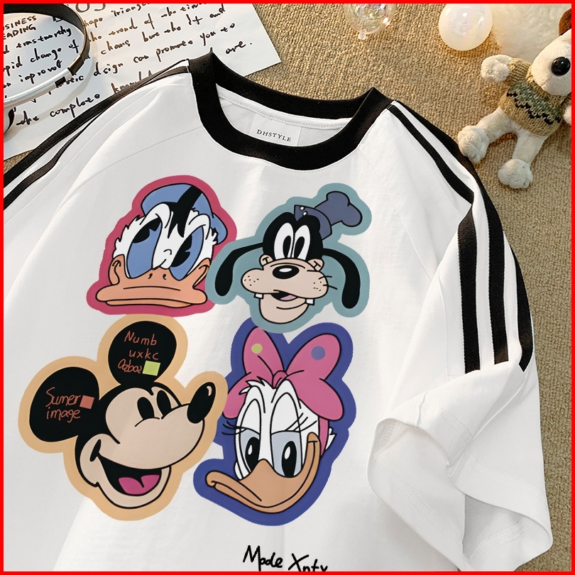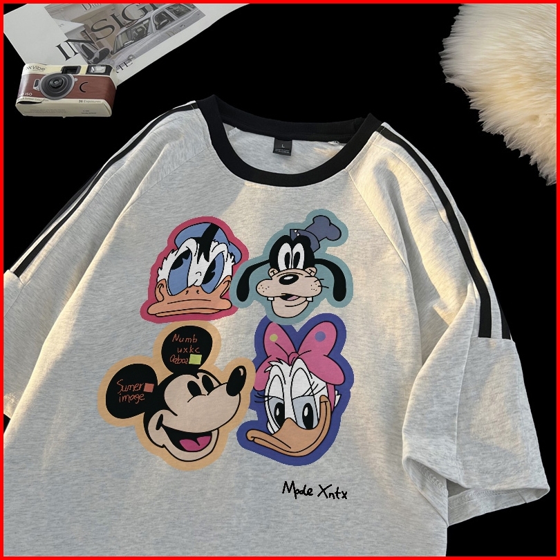 Forteid Cetakan Merek Trendi Retro Baju Oversize Bergaris Bahu Korean Style Kaos Longgar