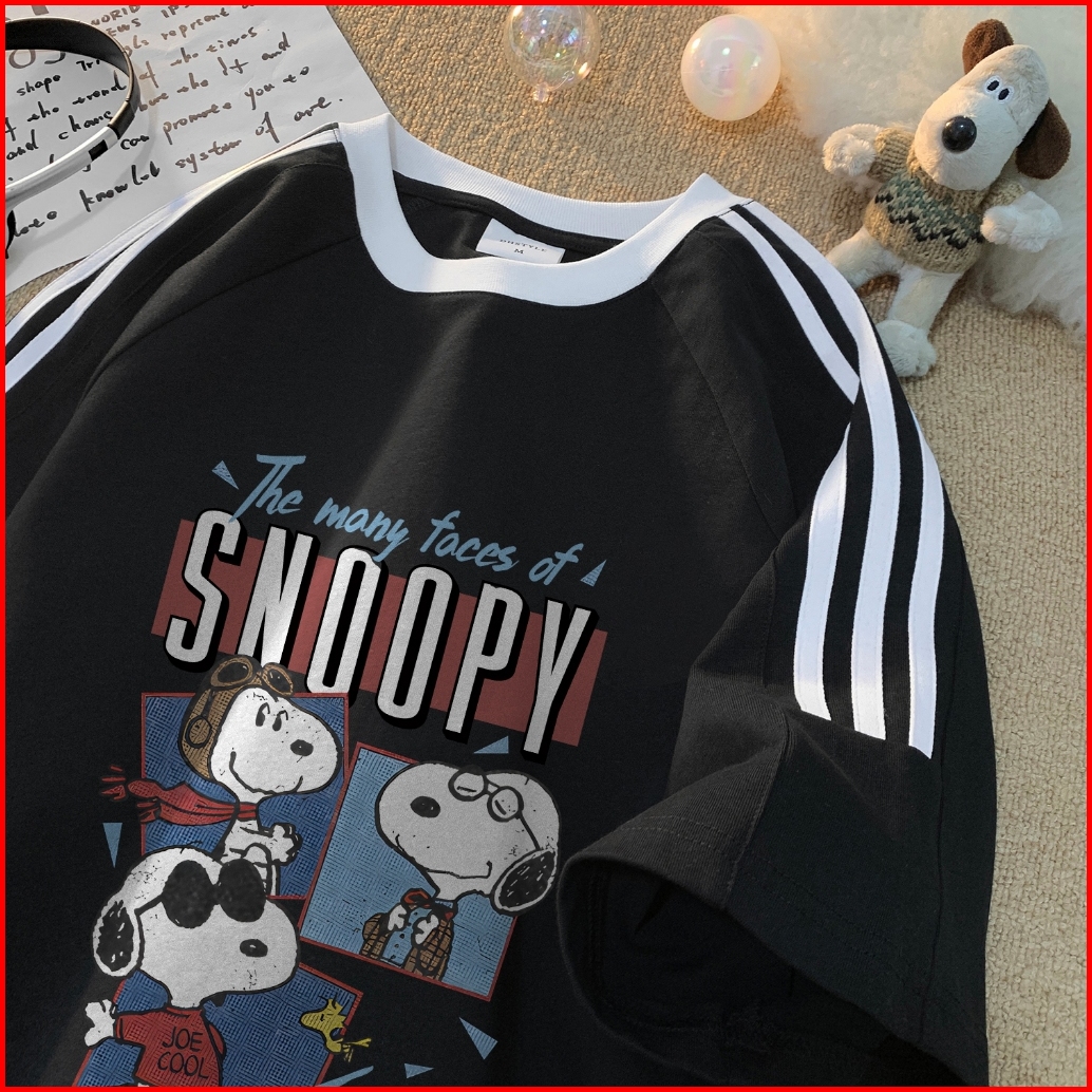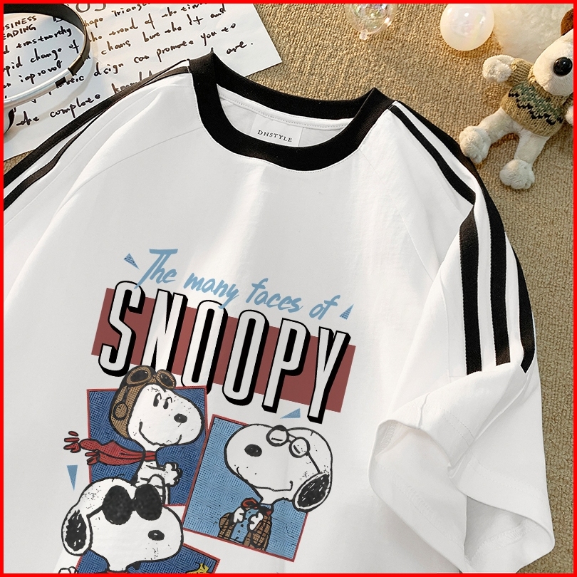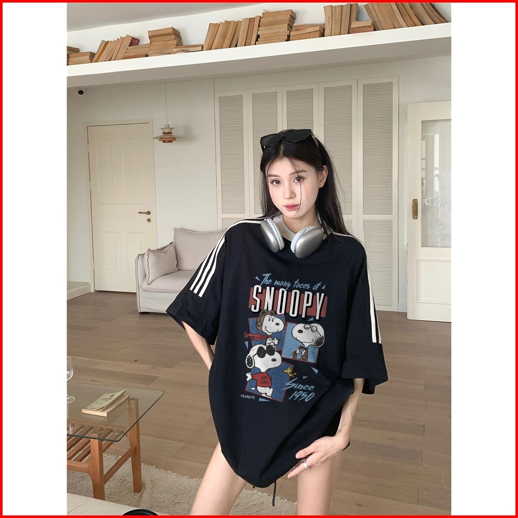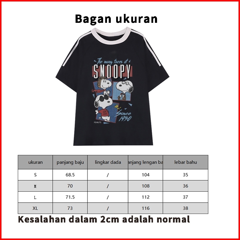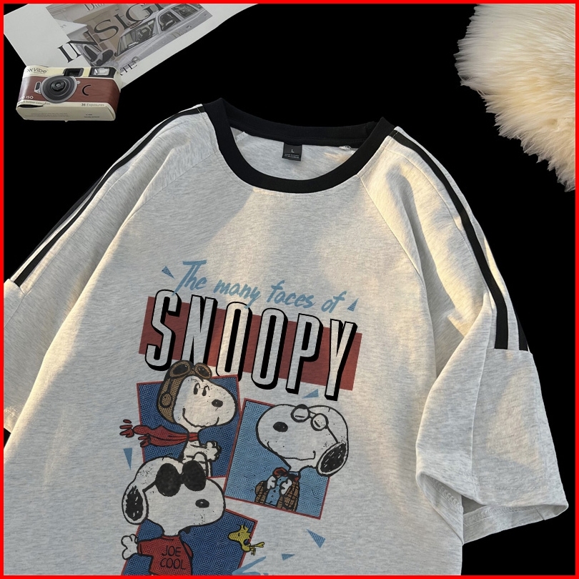 Forteid Cetakan Merek Trendi Retro Baju Oversize Pola Snoopy Korean Style Kaos Longgar